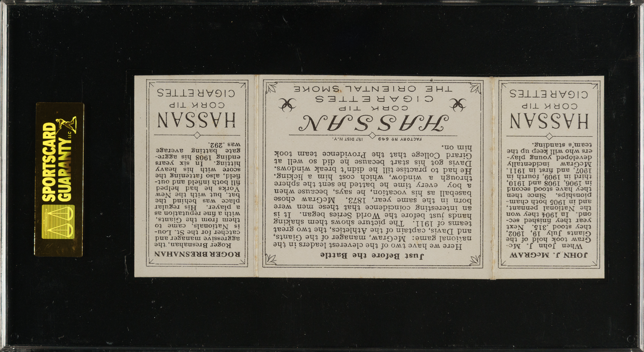 Graded VG/EX 50 by SGC. St. Louis Cardinals and New York Giants Hall of Famer Roger Bresnahan and John McGraw.