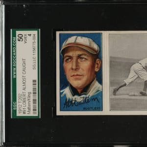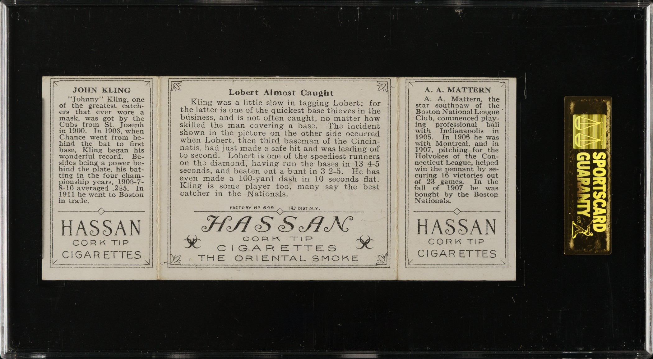 Lot # 1759: 1912 T202 Hassan Triple Folder "Lobert Almost Caught" Mattern/Kling SGC VG/EX 50