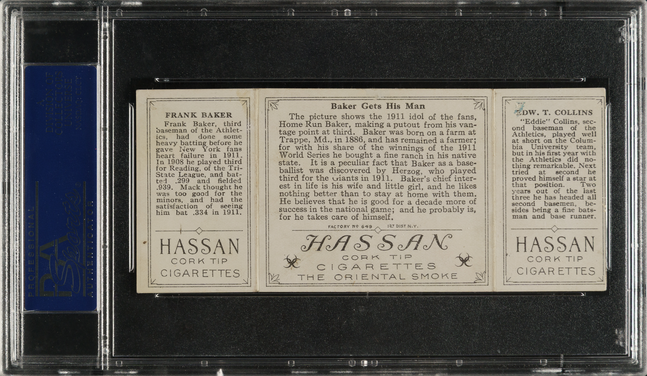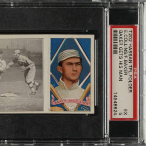 Graded EX 5 by PSA. Philadelphia Athletics Hall of Famers Frank "Home Run" Baker and Eddie Collins.
