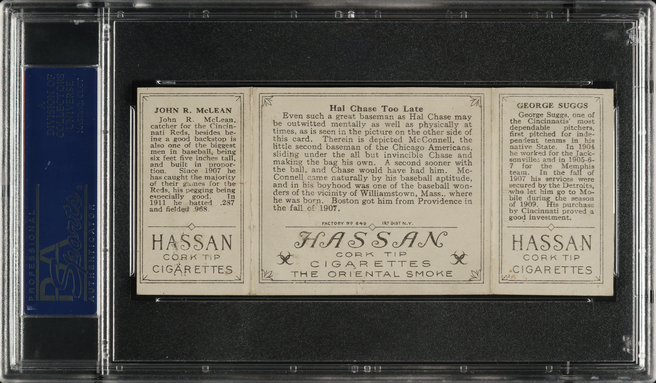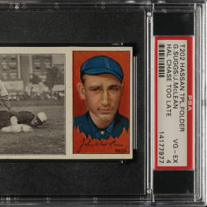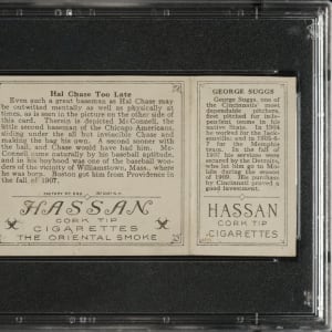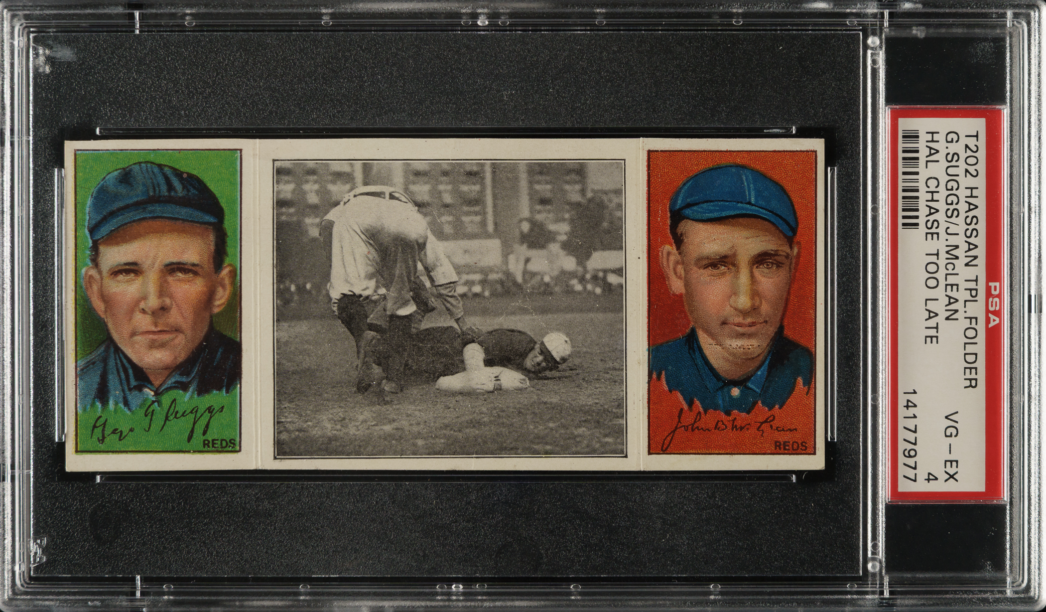 Lot # 1727: 1912 T202 Hassan Triple Folder "Hal Chase Too Late" Suggs/McLean PSA VG-EX 4