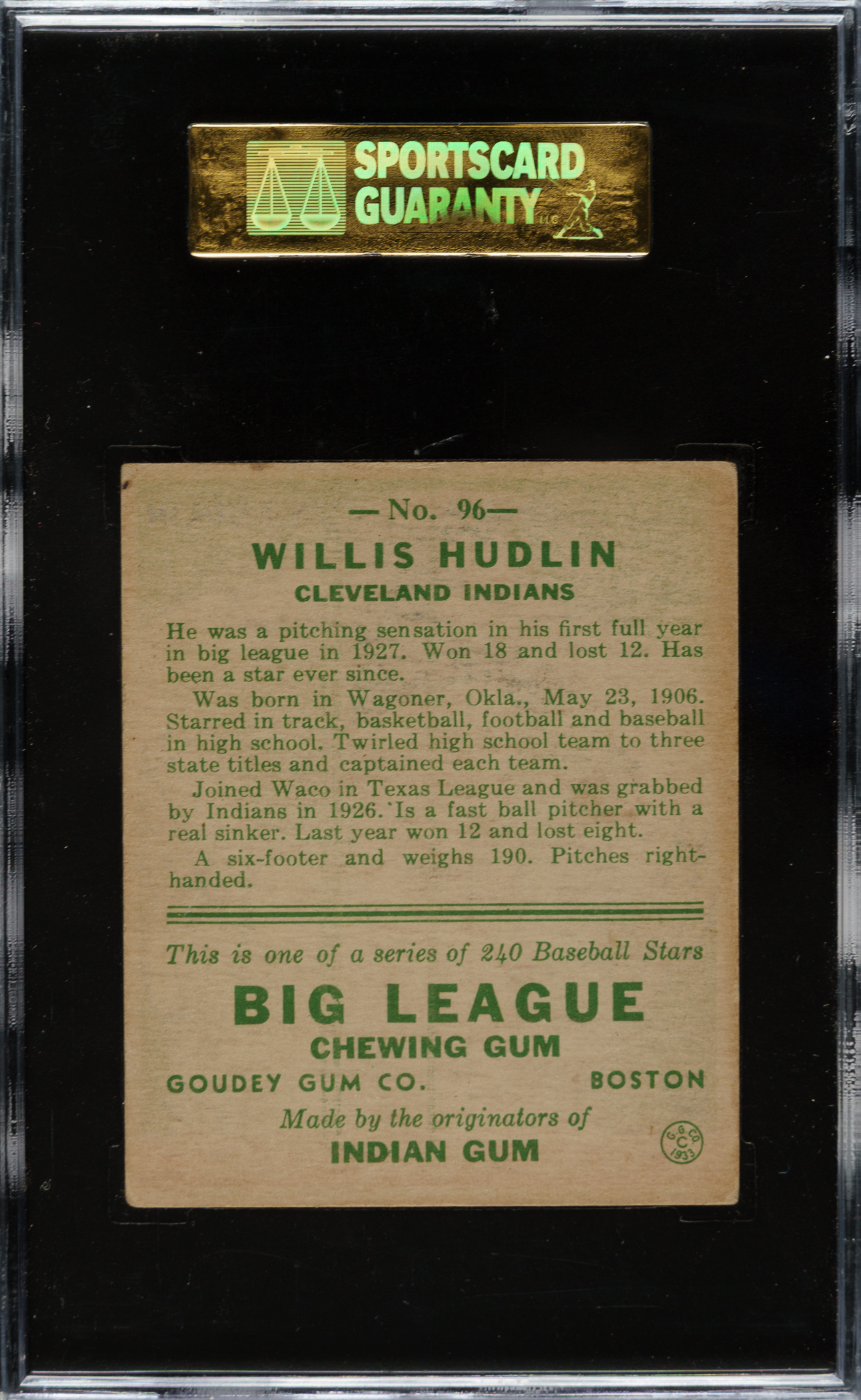 Graded EX 60 by SGC. Cleveland Indians.