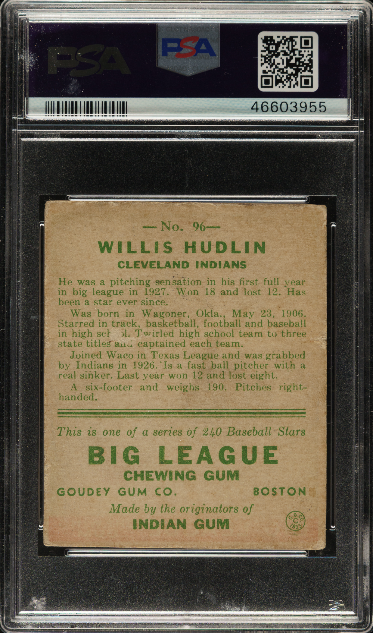 Graded VG-EX 4 by PSA. Cleveland Indians.
