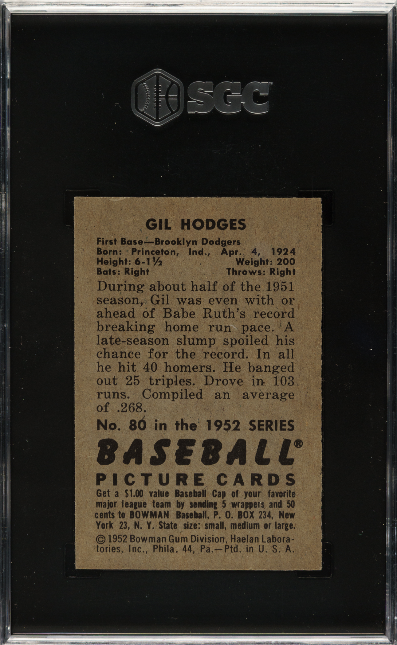 Graded EX/NM 6 by SGC. Brooklyn Dodgers Hall of Famer Gil Hodges.