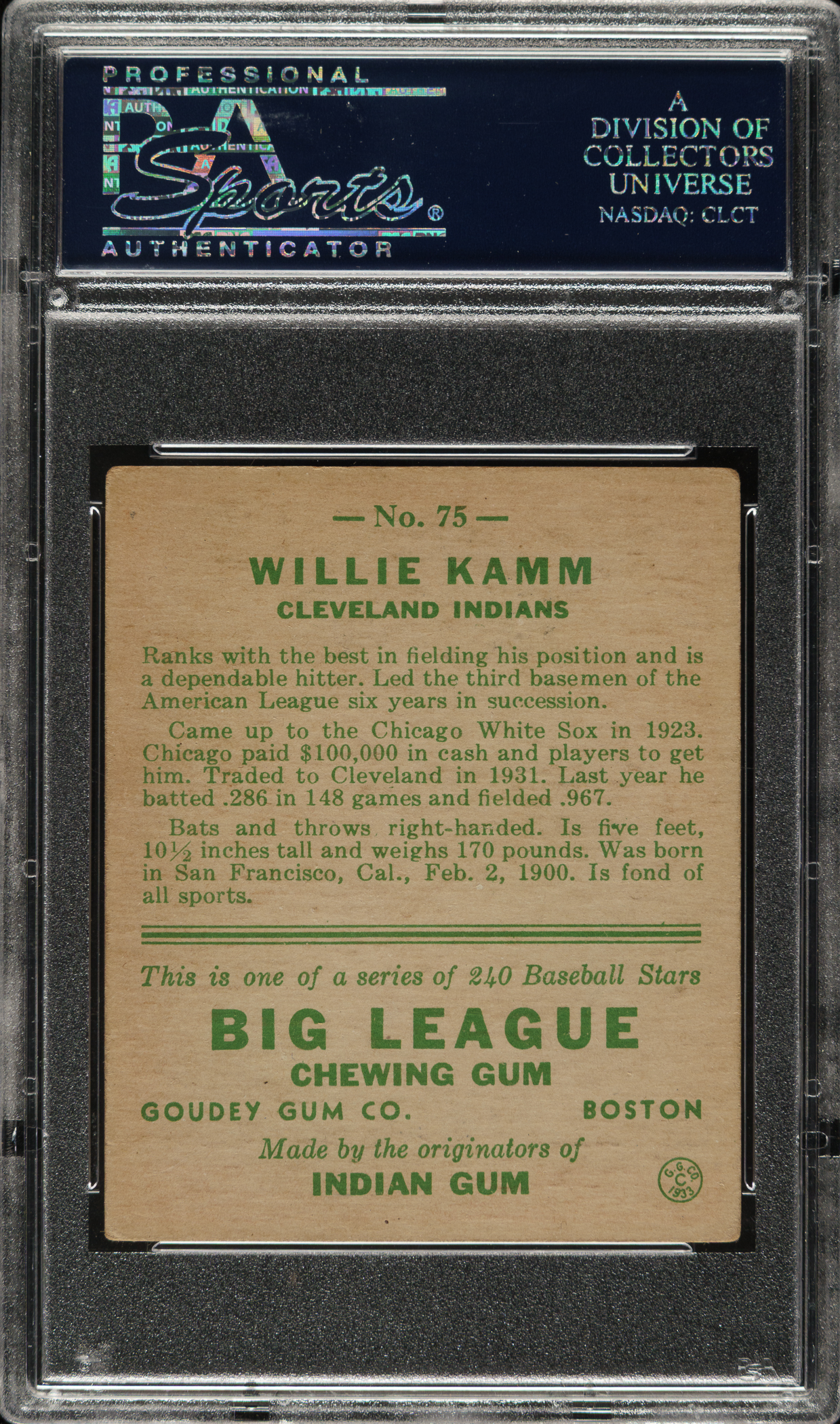 Lot # 2110: 1933 R319 Goudey #75 Willie Kamm PSA VG-EX 4