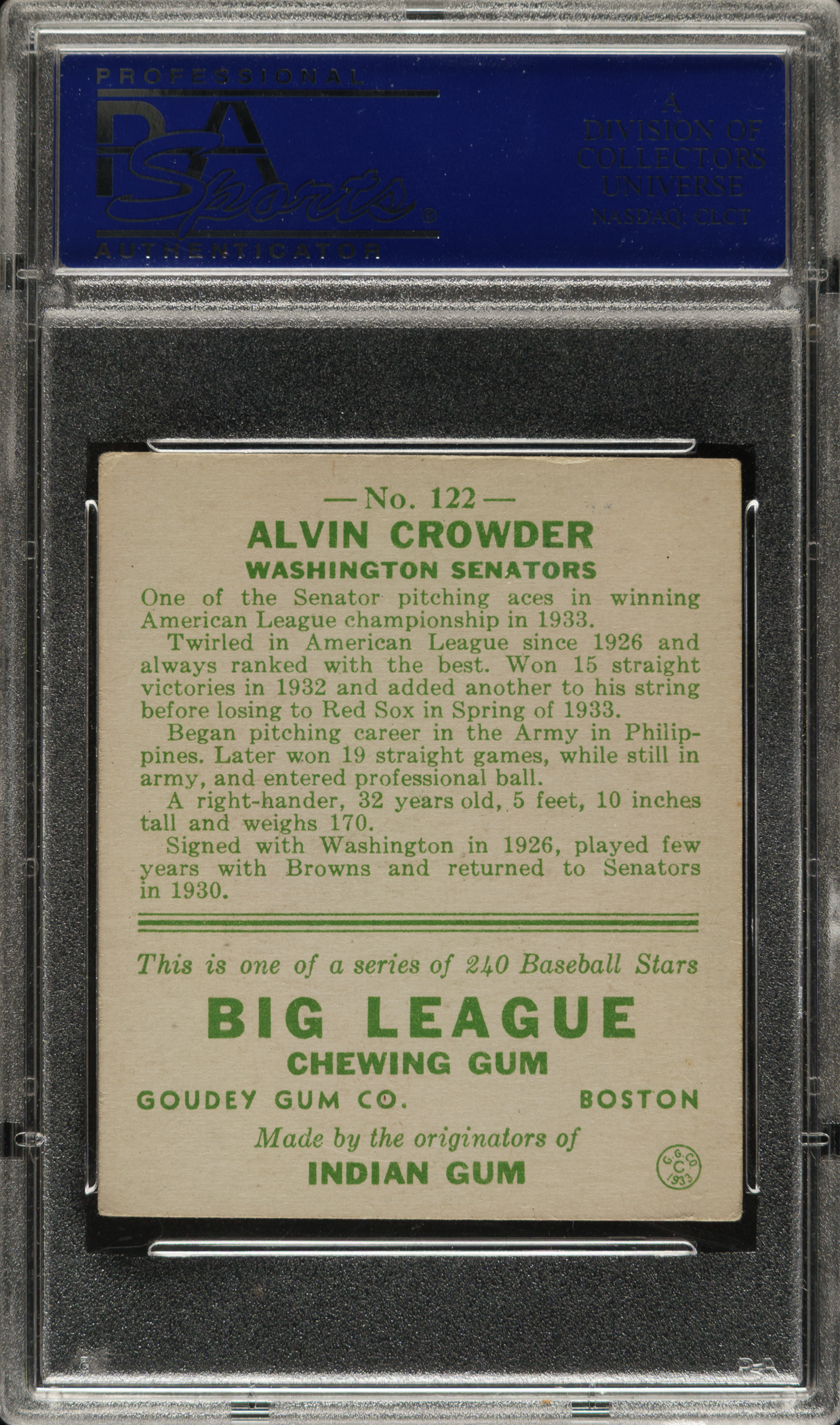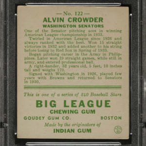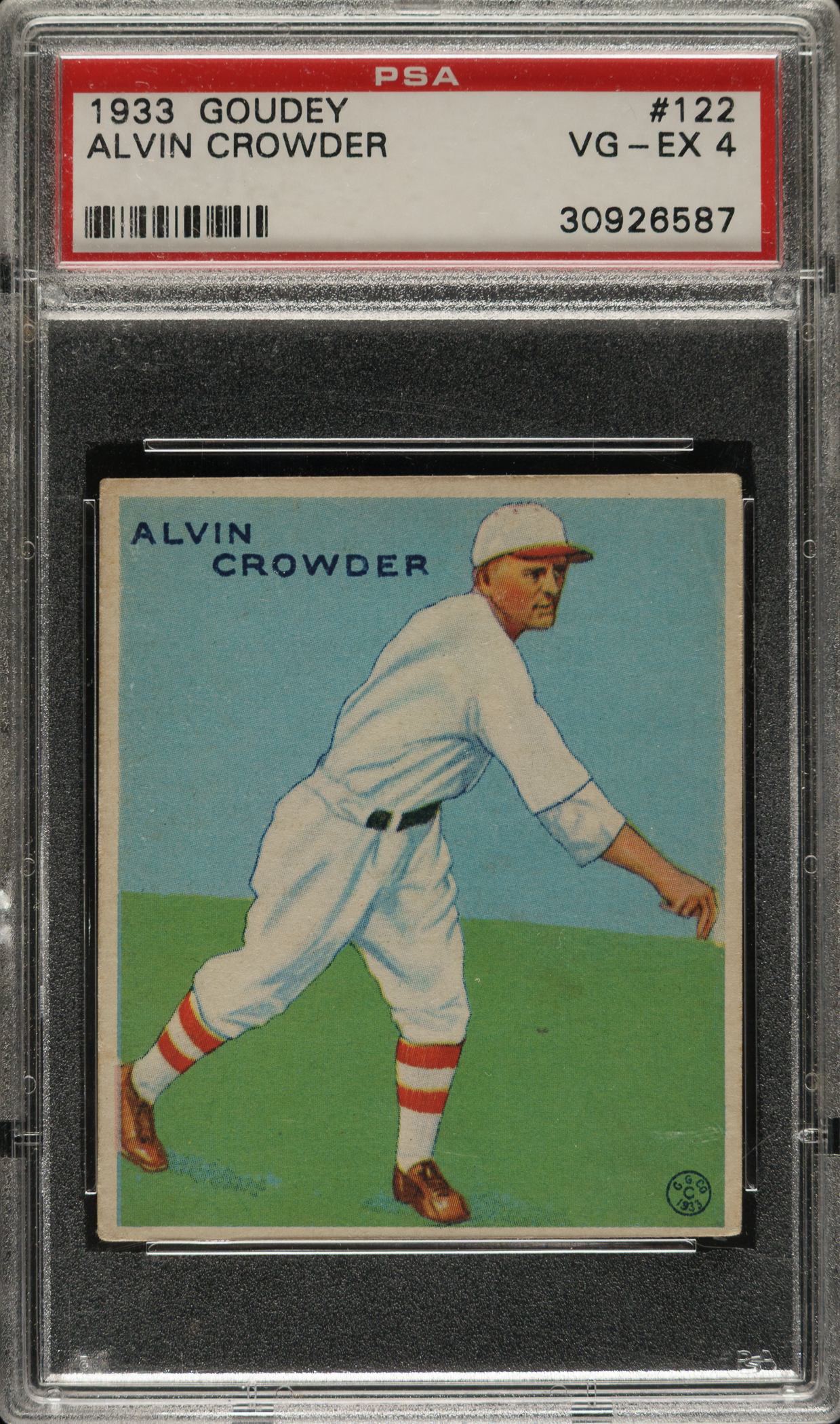 Lot # 2034: 1933 R319 Goudey #122 Alvin Crowder PSA VG-EX 4