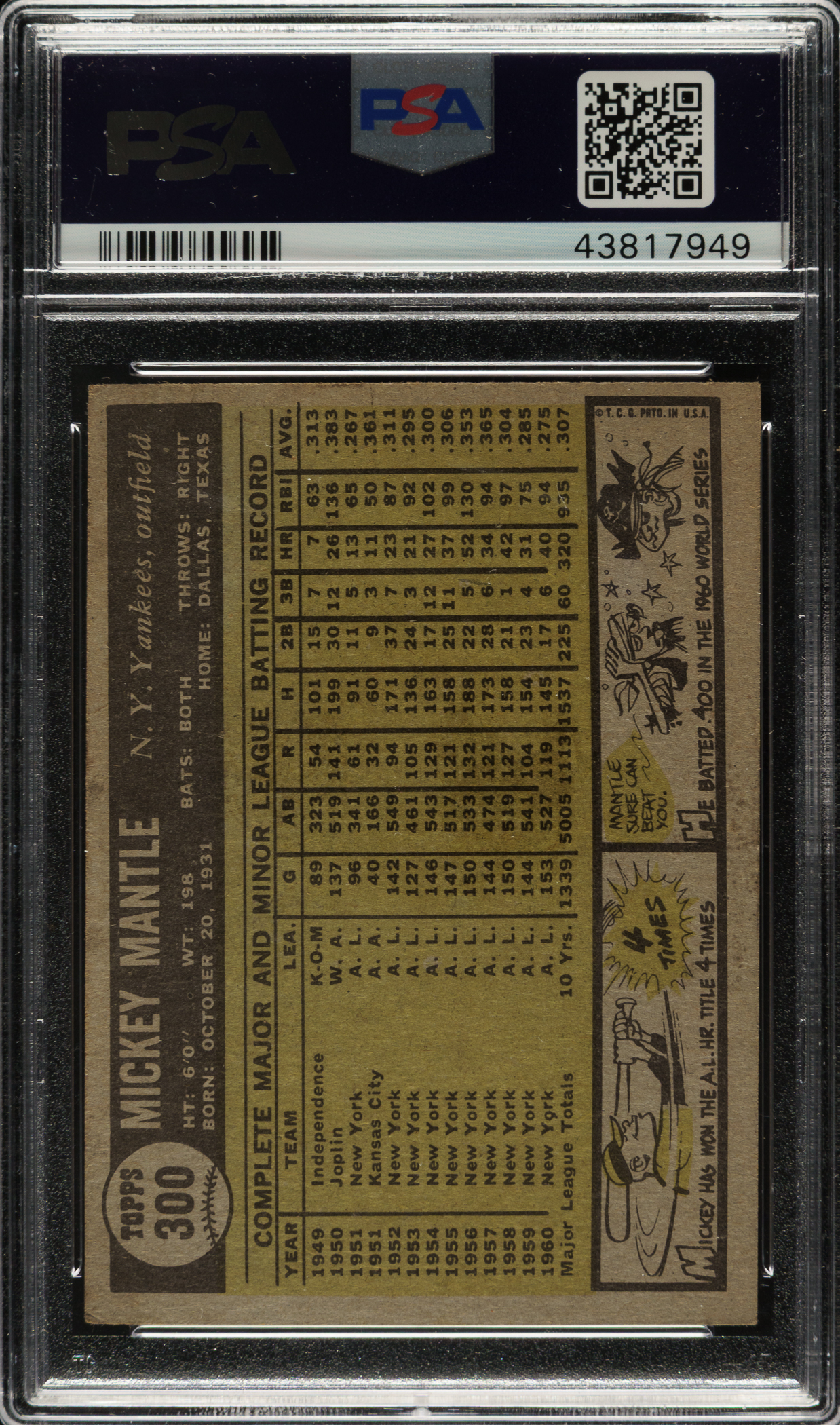 Graded GOOD 2 by PSA. New York Yankees Hall of Famer Mickey Mantle.