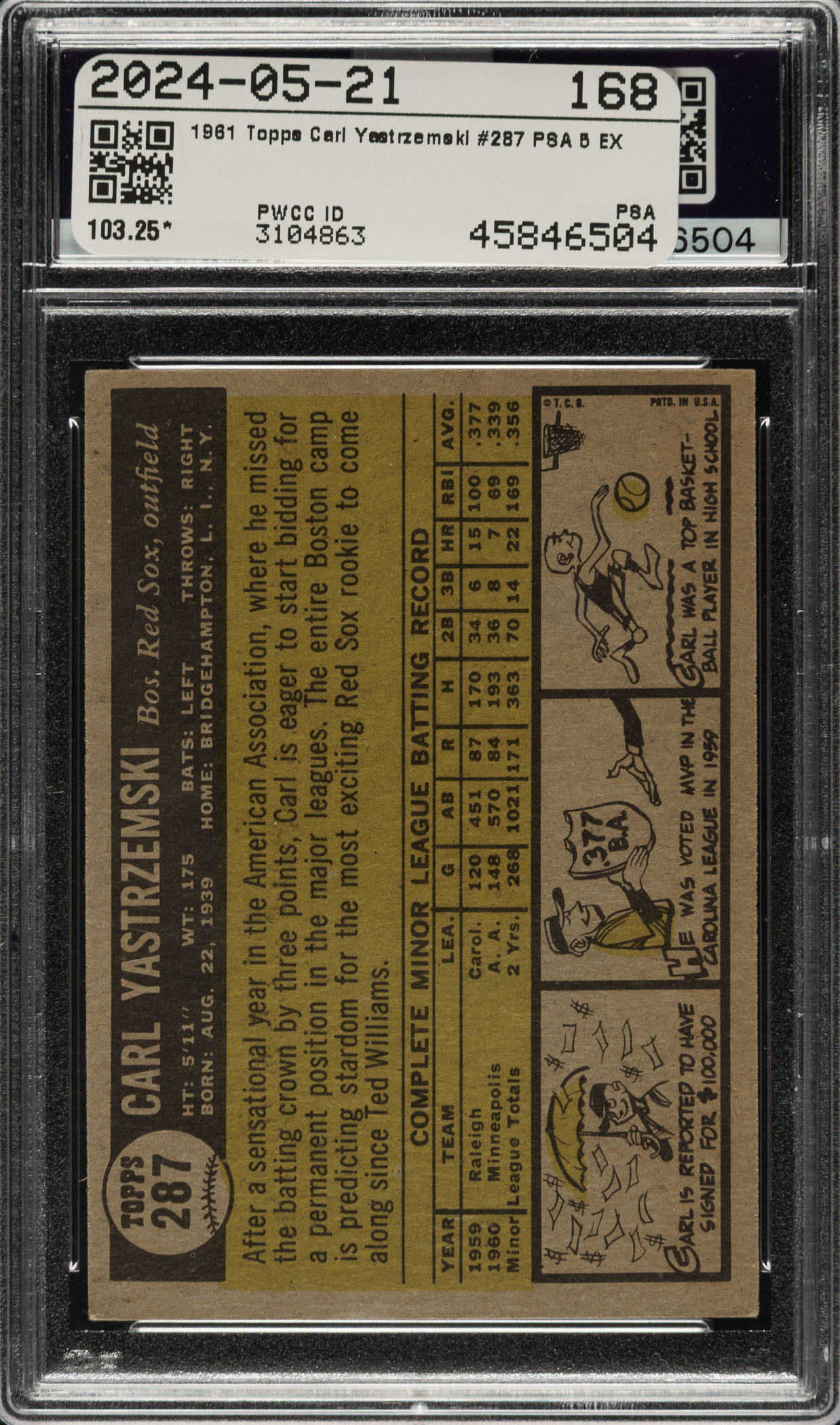 Graded EX 5 by PSA. Boston Red Sox Hall of Famer Carl Yastrzemski.