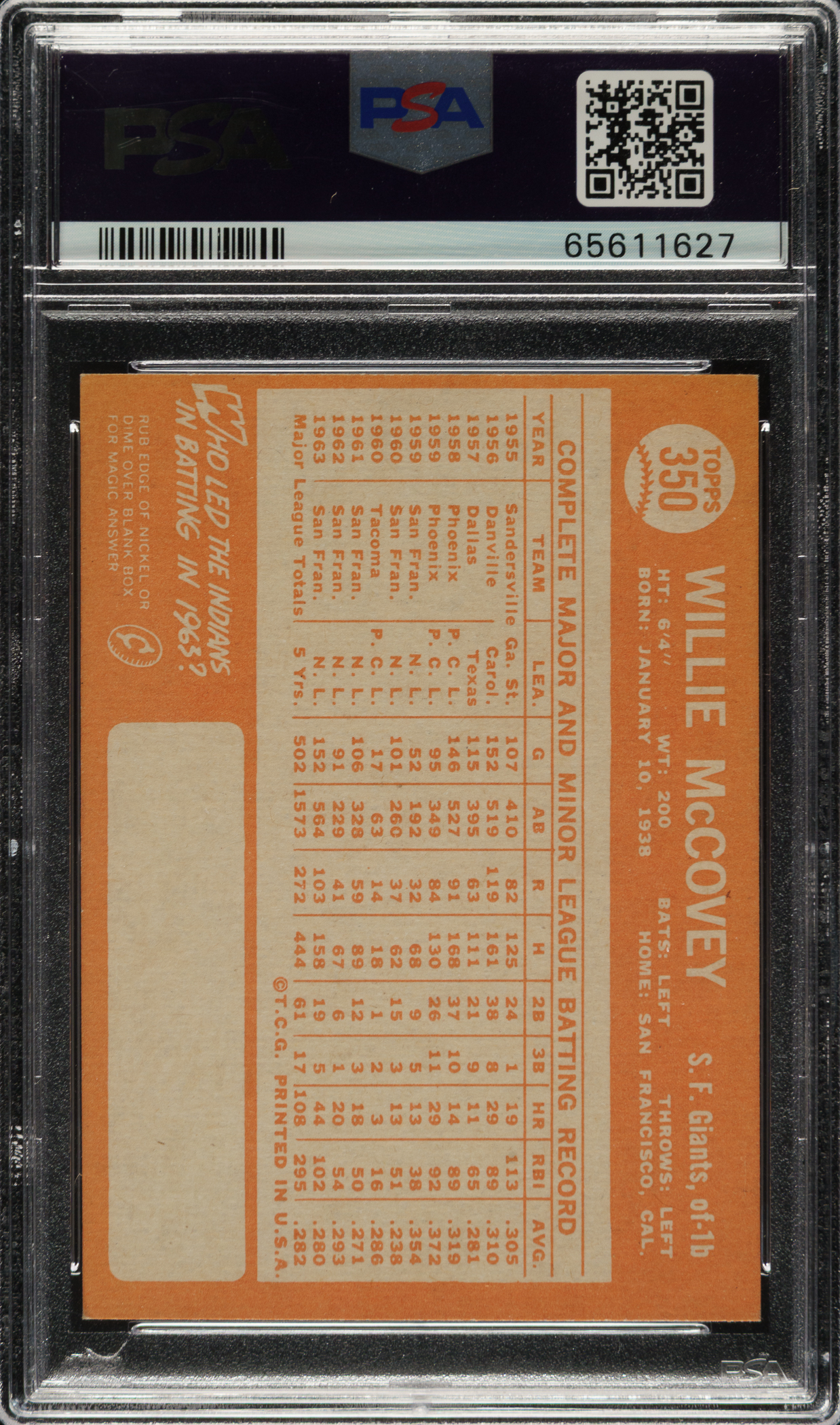 Lot # 3001: 1964 Topps #350 Willie McCovey PSA NM-MT 8