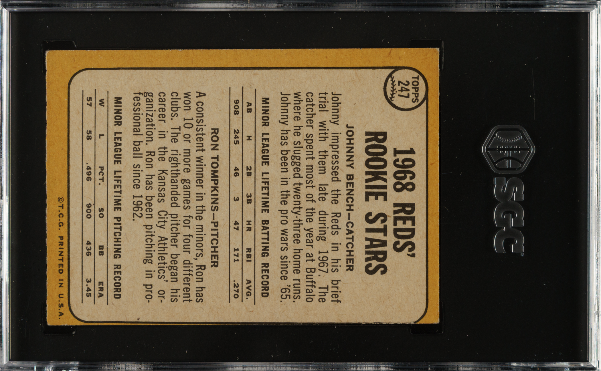 Graded VG/EX 4 by SGC. Cincinnati Reds Hall of Famer Johnny Bench.