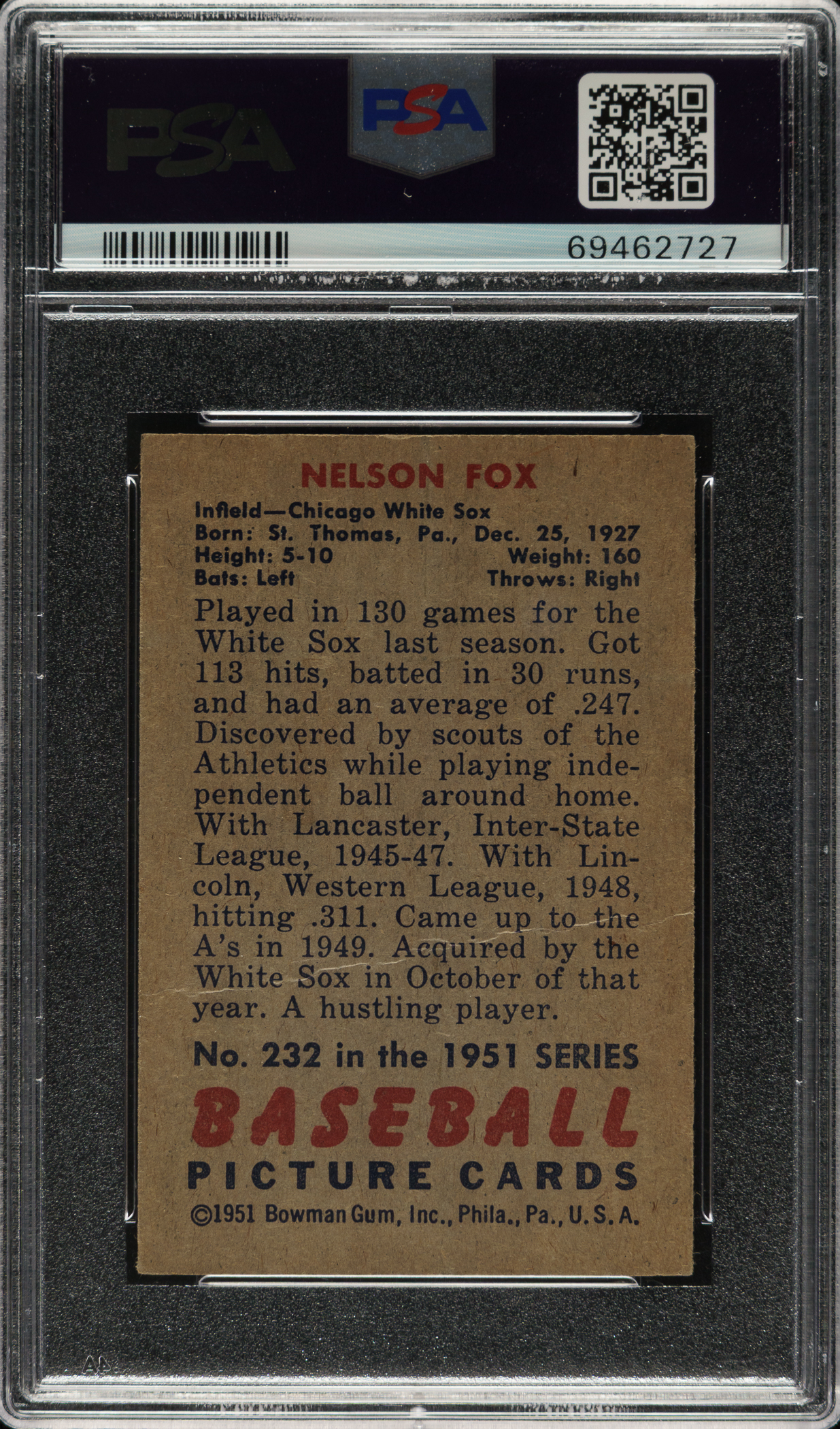 Graded GOOD 2 by PSA. Chicago White Sox Hall of Famer Nellie Fox.