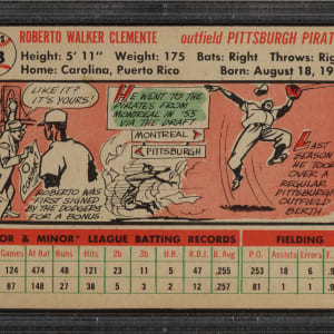 Graded VG-EX 4 by PSA. Pittsburgh Pirates Hall of Famer Roberto Clemente.