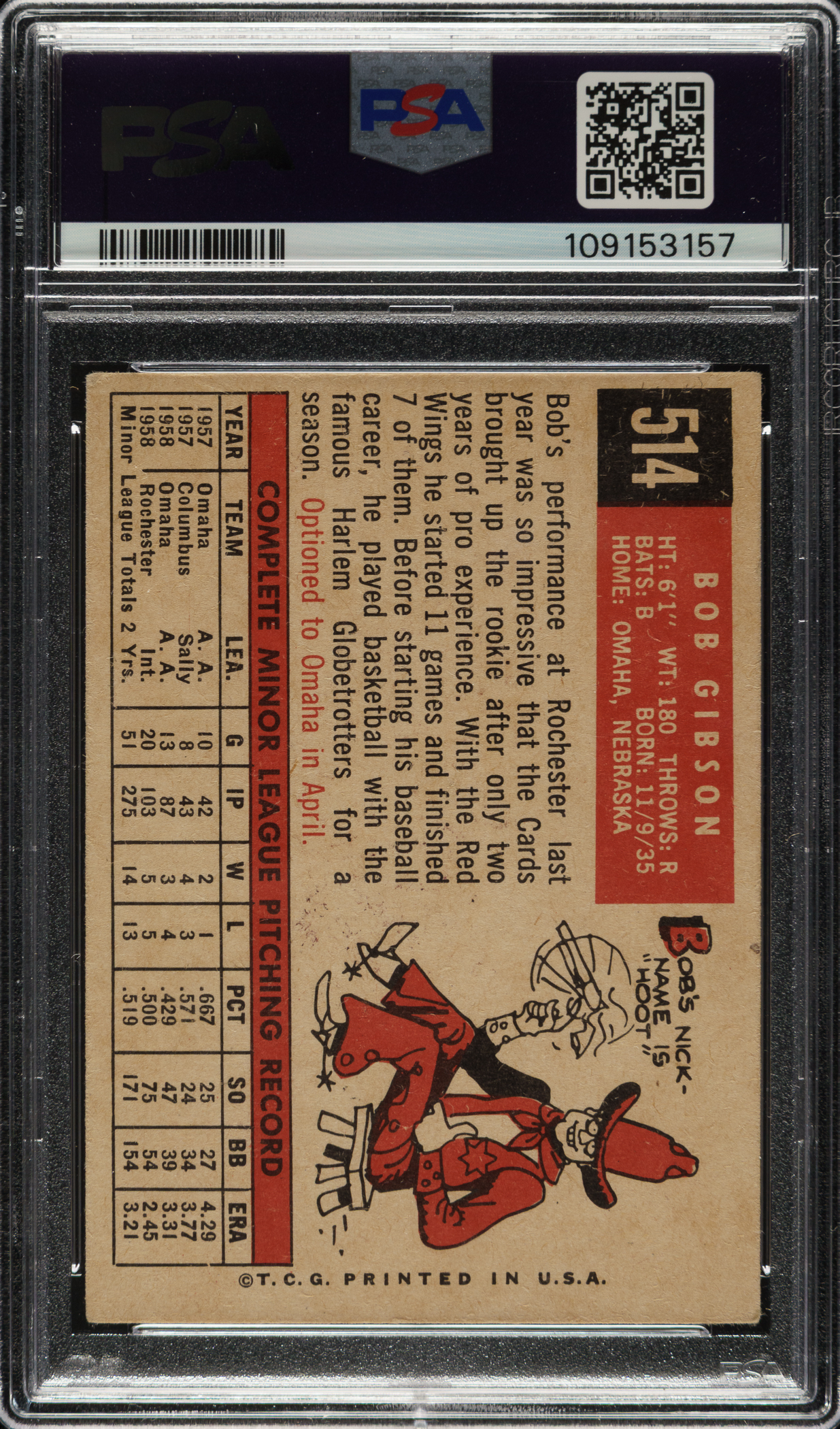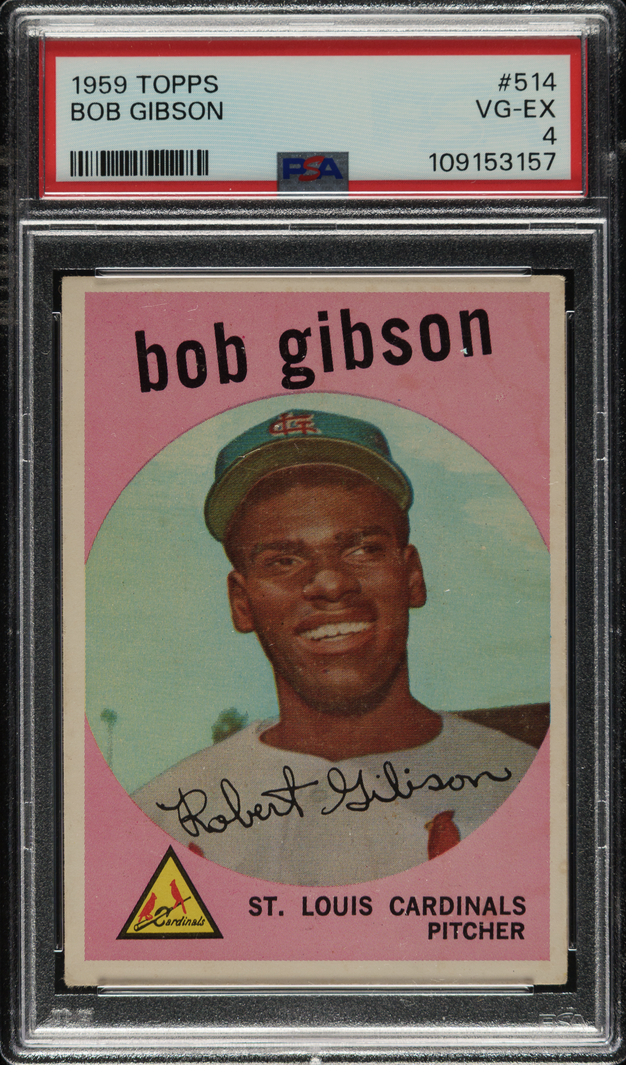 Graded VG-EX 4 by PSA. St. Louis Cardinals Hall of Famer Bob Gibson.