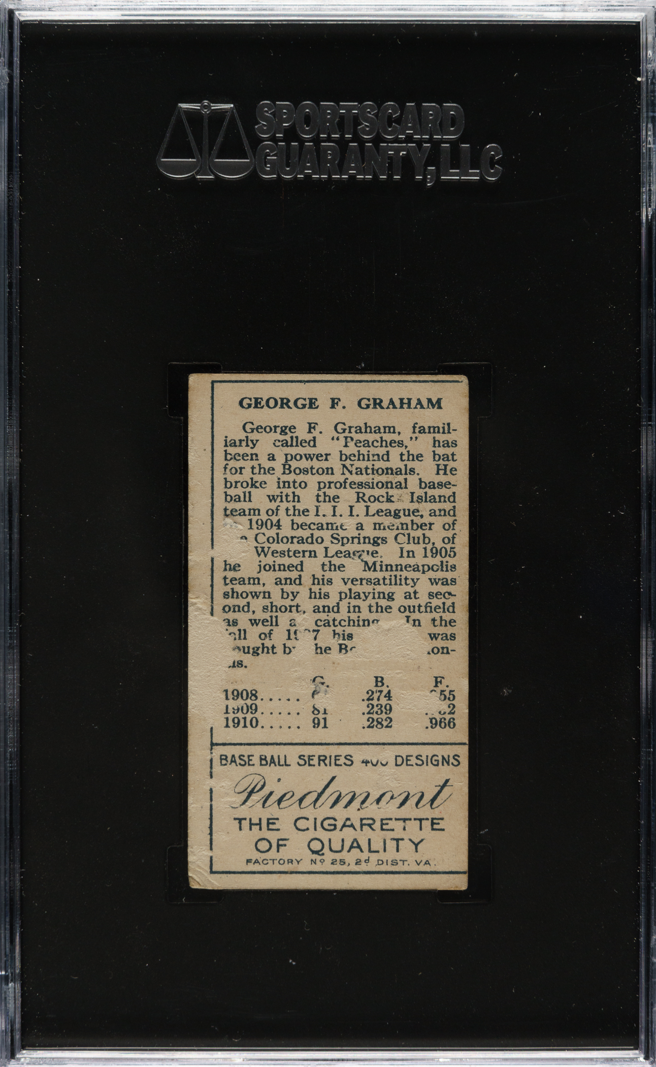 1909-1911 T206 White Border Bill Dahlen Brooklyn SGC FAIR 20 - Scarce "Elite 12" Piedmont 350 Back