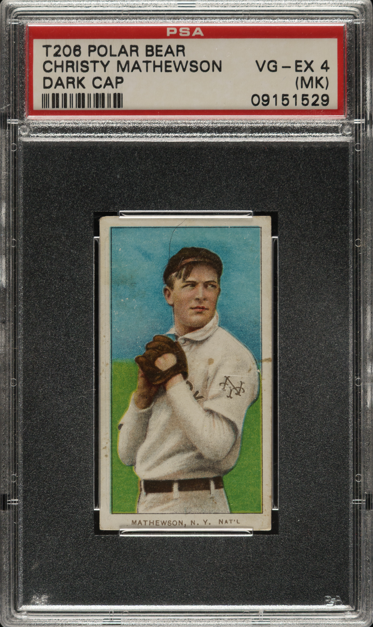 Graded VG-EX 4 (MK) by PSA. New York Giants Hall of Famer Christy Mathewson.