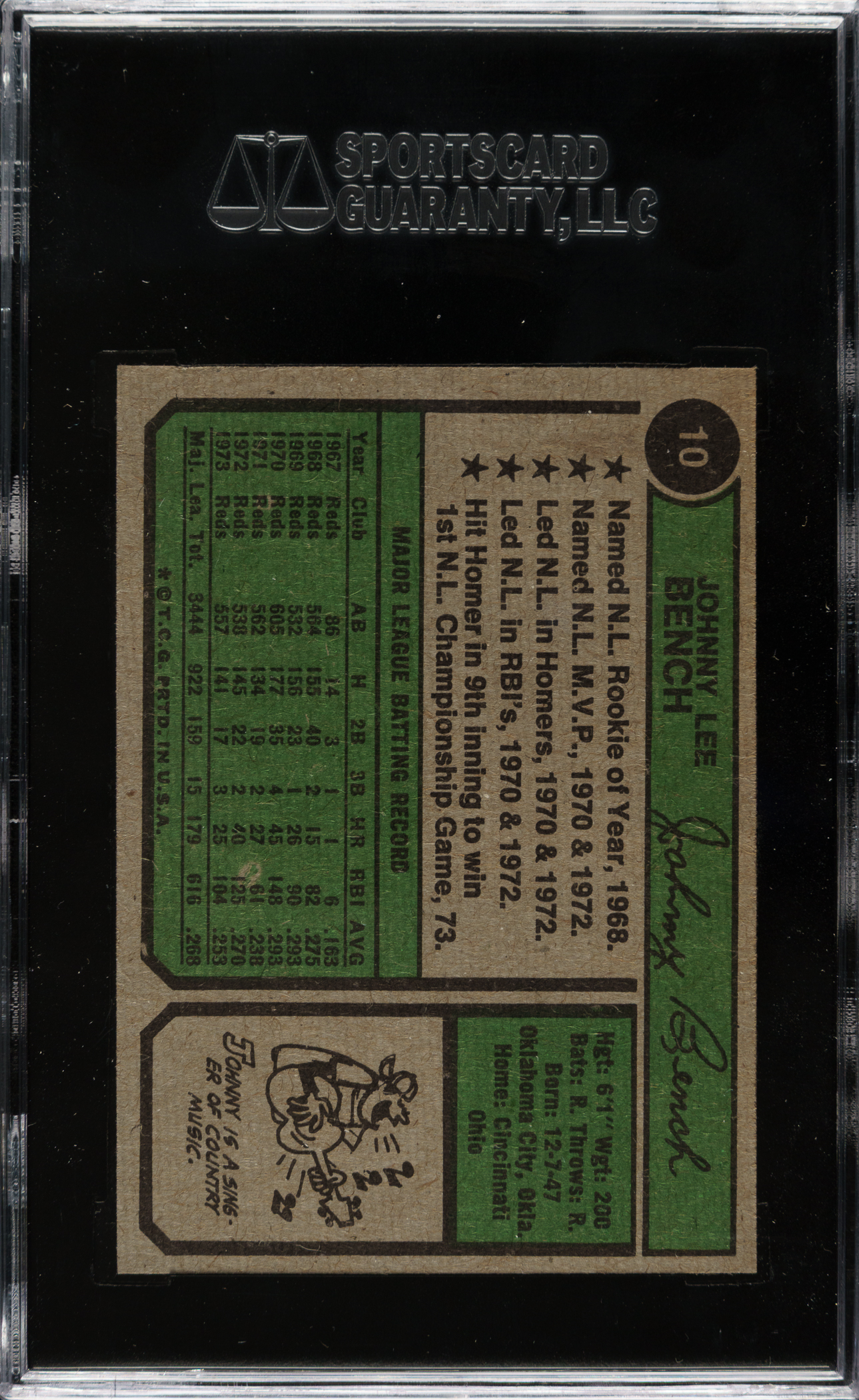 Graded MINT 96 by SGC. Cincinnati Reds Hall of Famer Johnny Bench.