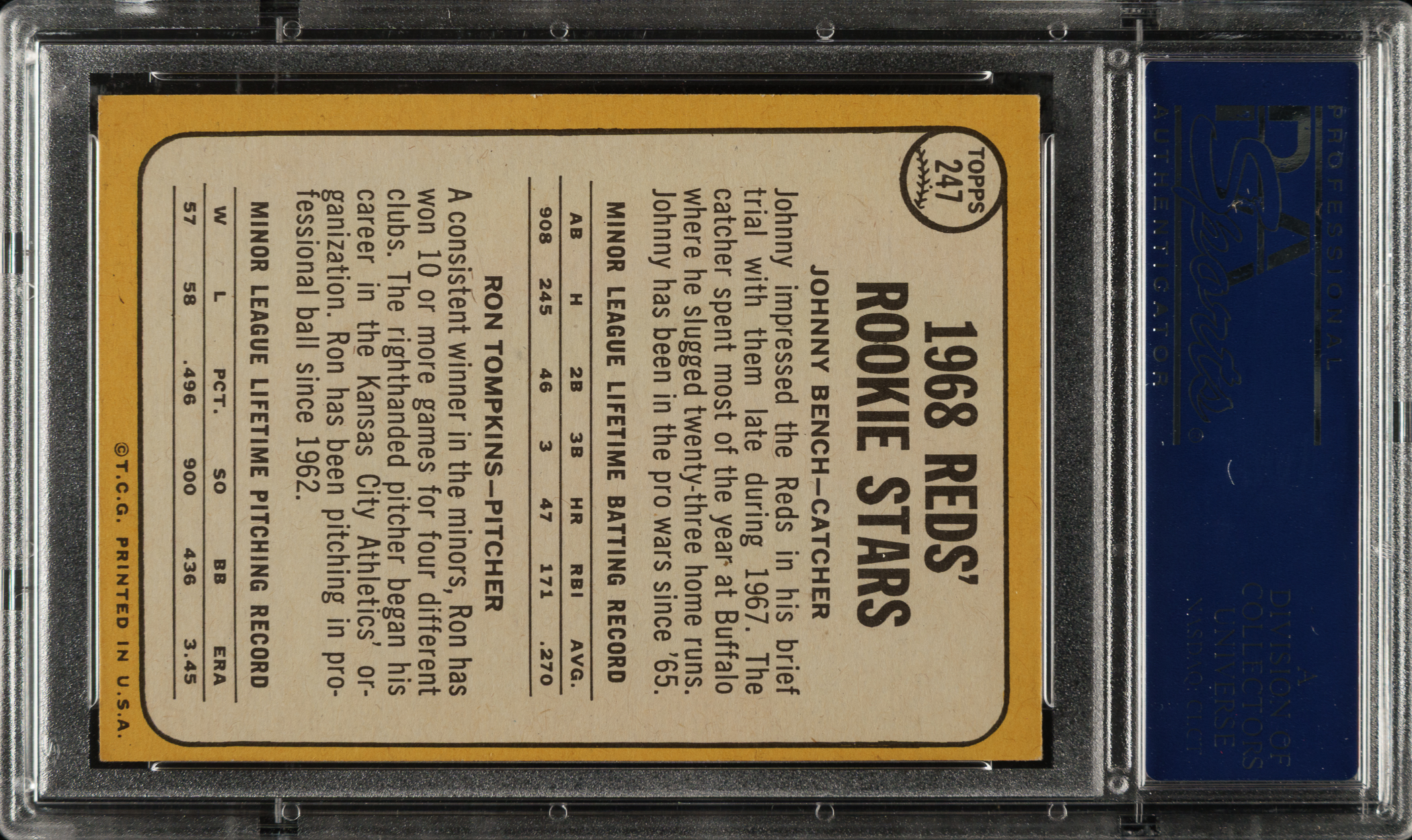 Graded VG-EX 4 by PSA. Cincinnati Reds Hall of Famer Johnny Bench.