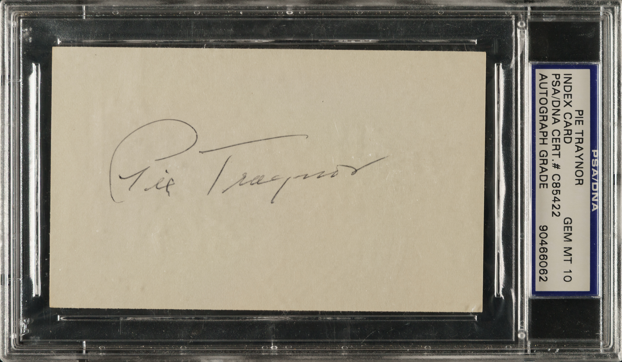 PSA/DNA has encapsulated the card and graded the signature GEM MINT 10. Pittsburgh Pirates Hall of Famer Pie Traynor.