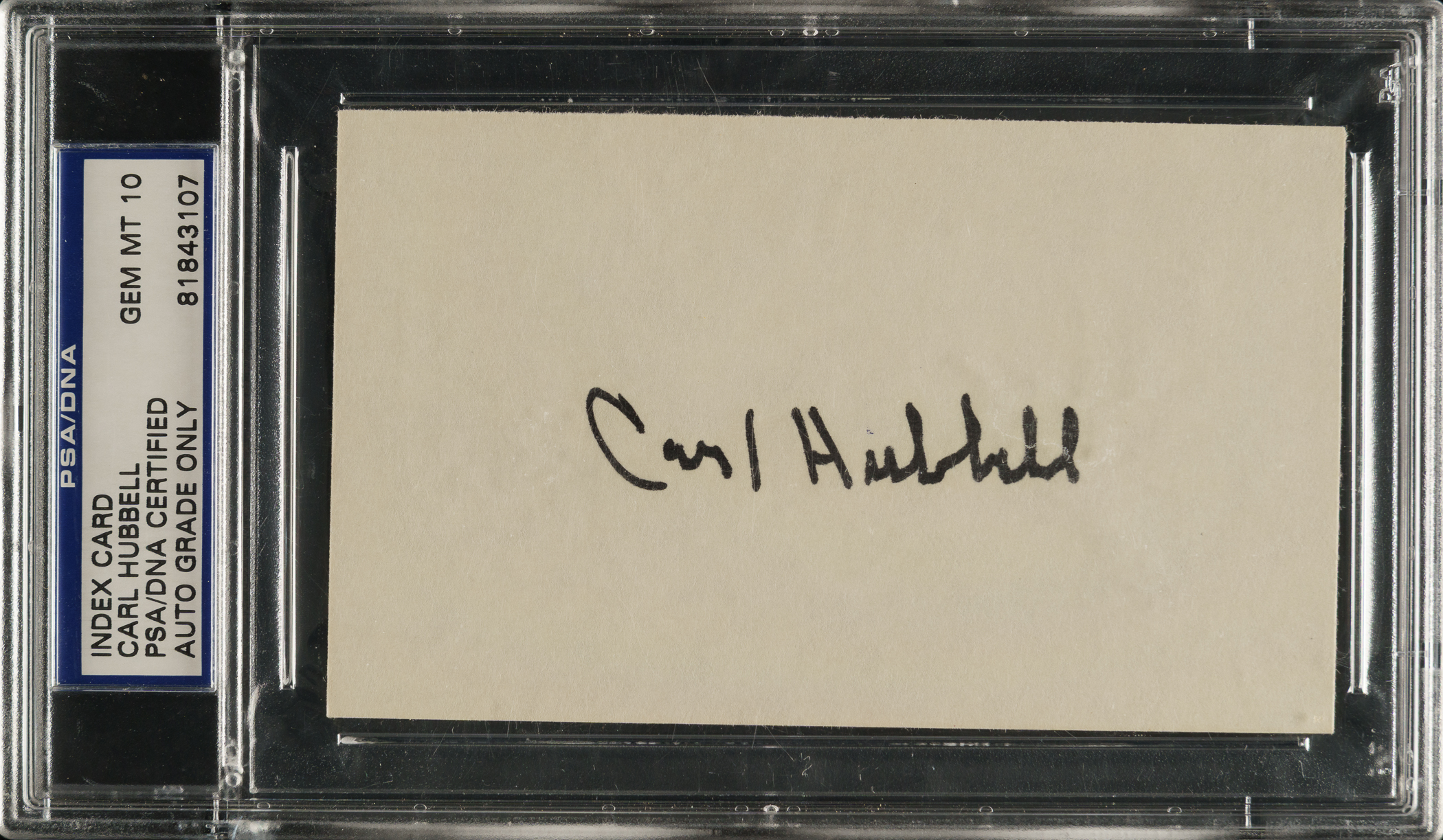 PSA/DNA has encapsulated the card and graded the signature GEM MINT 10. New York Giants Hall of Famer Carl Hubbell.