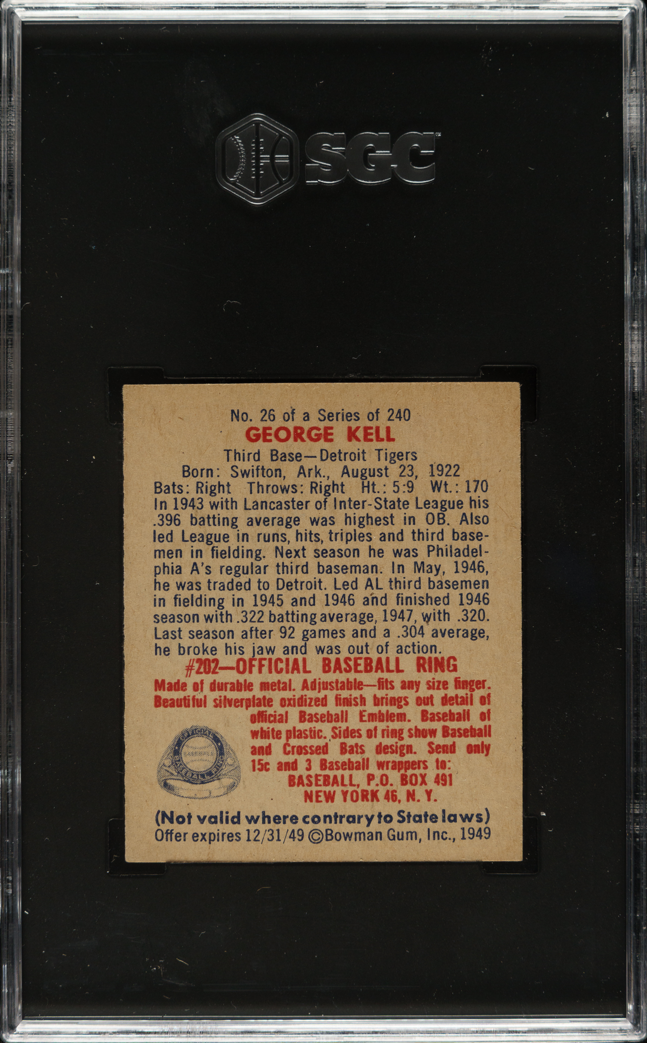 Graded EX 5 by SGC. Detroit Tigers Hall of Famer George Kell.