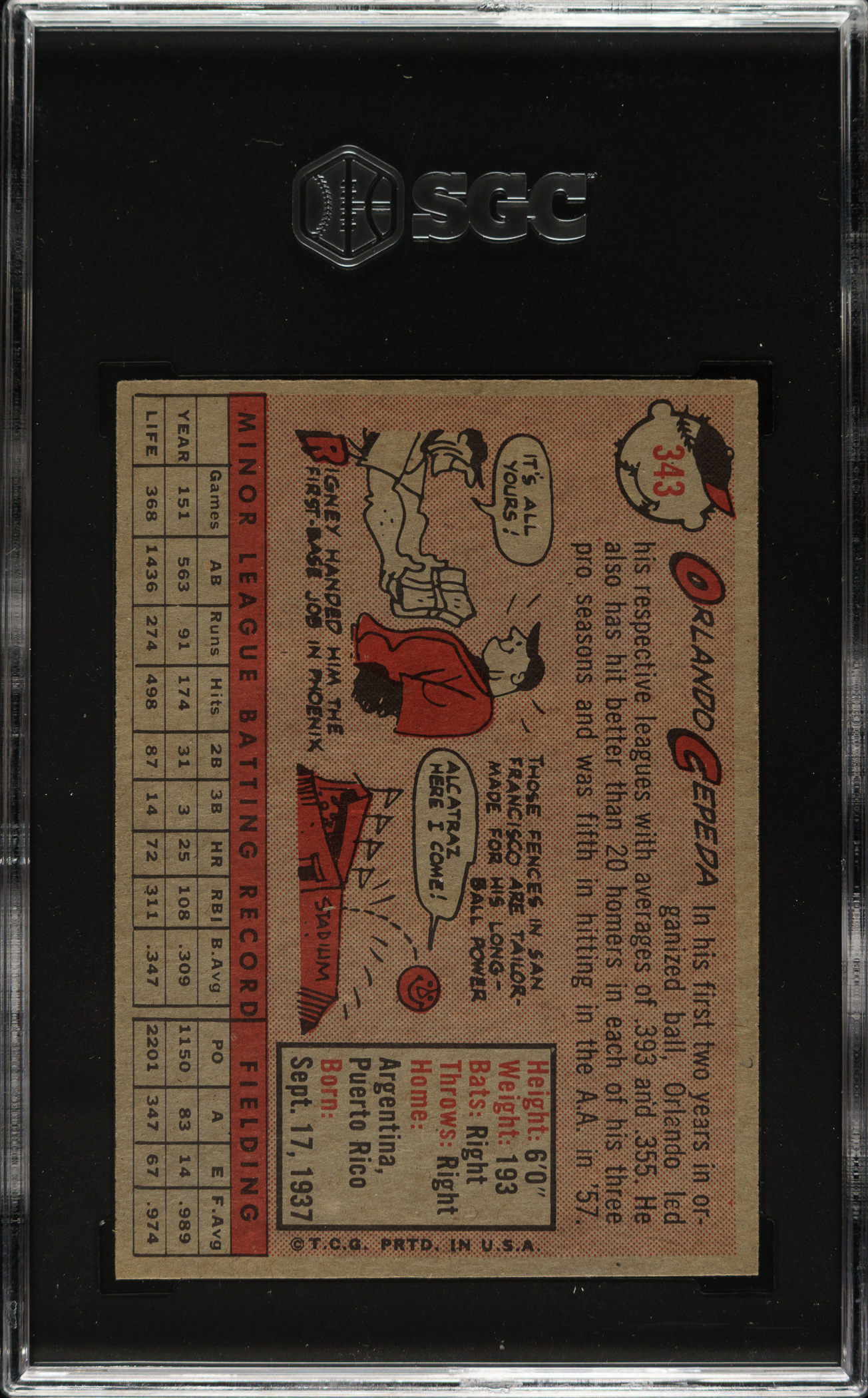 Graded EX/NM+ 6.5 by SGC. San Francisco Giants Hall of Famer Orlando Cepeda.