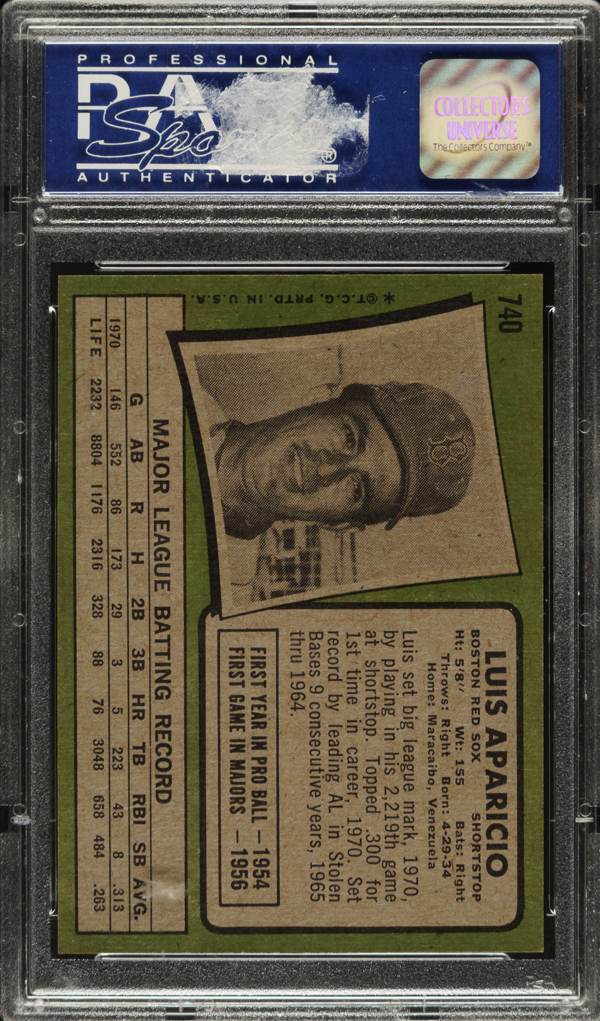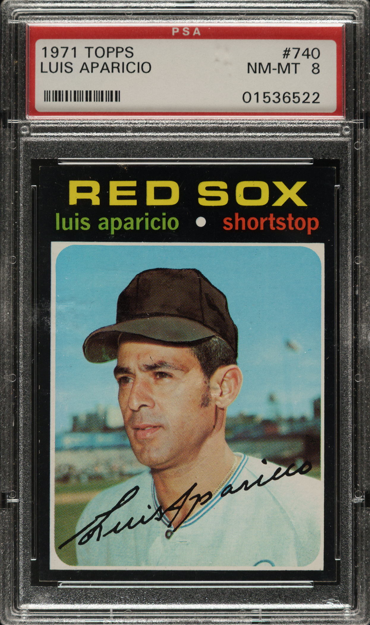 Graded NM-MT 8 by PSA. Boston Red Sox Hall of Famer Luis Aparicio.
