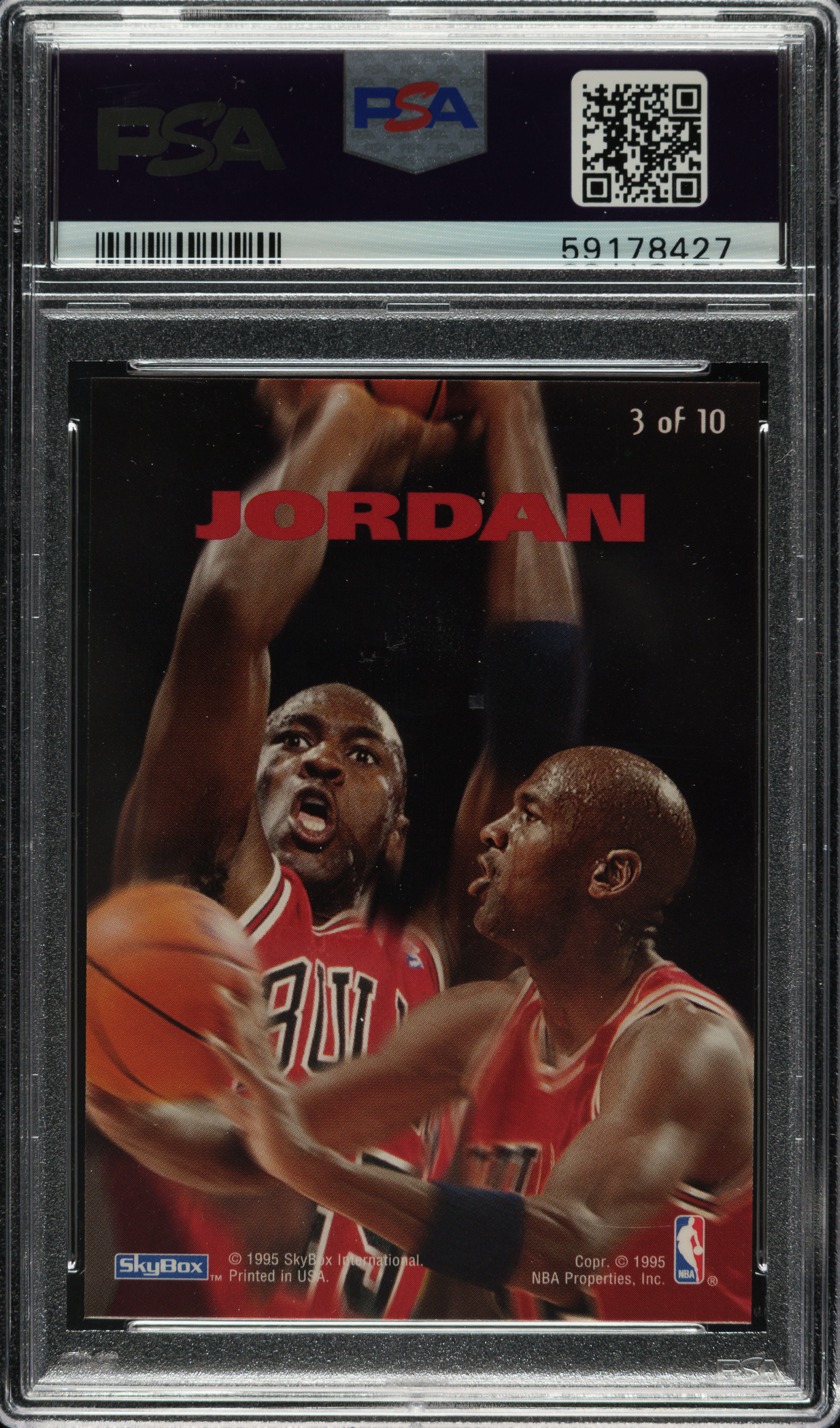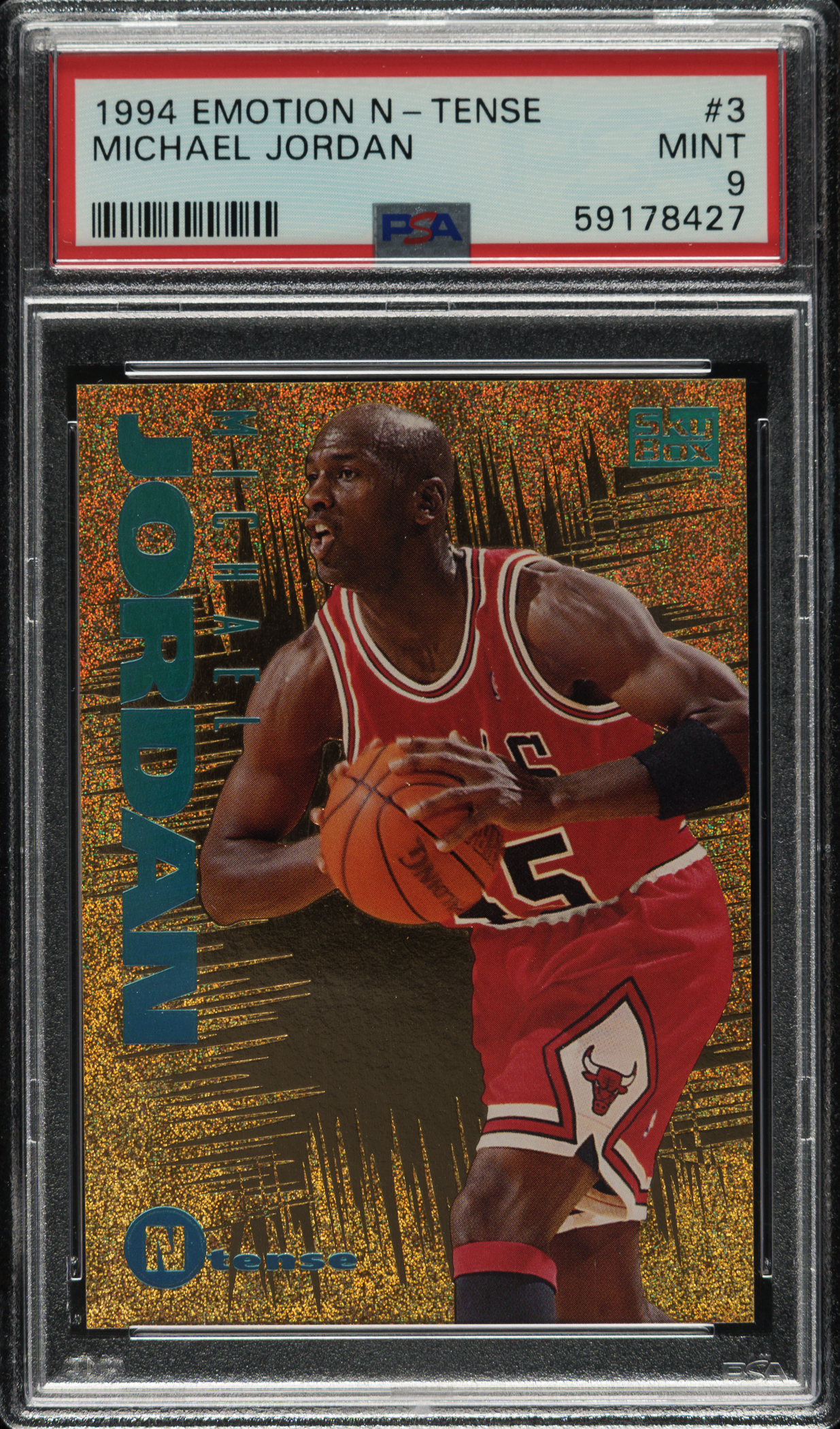 Lot # 3835: 1994-1995 Skybox Basketball Emotion N-Tense #3 Michael Jordan PSA MINT 9