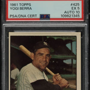 Graded EX 5 by PSA with a GEM MINT 10 signature. New York Yankees Hall of Famer Yogi Berra.