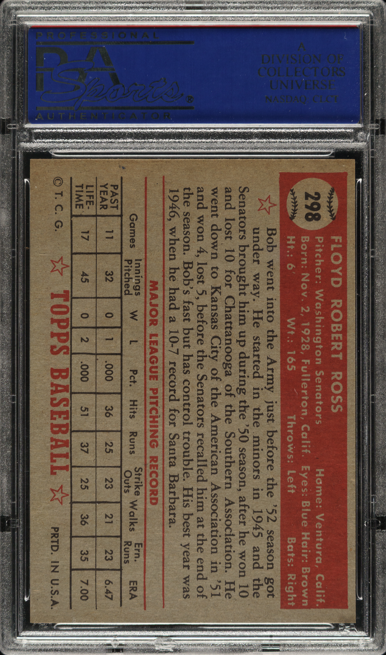 Graded MINT 9 by PSA. Washington Senators. Only two examples grade higher out of more than 650 cards evaluated by PSA to date.