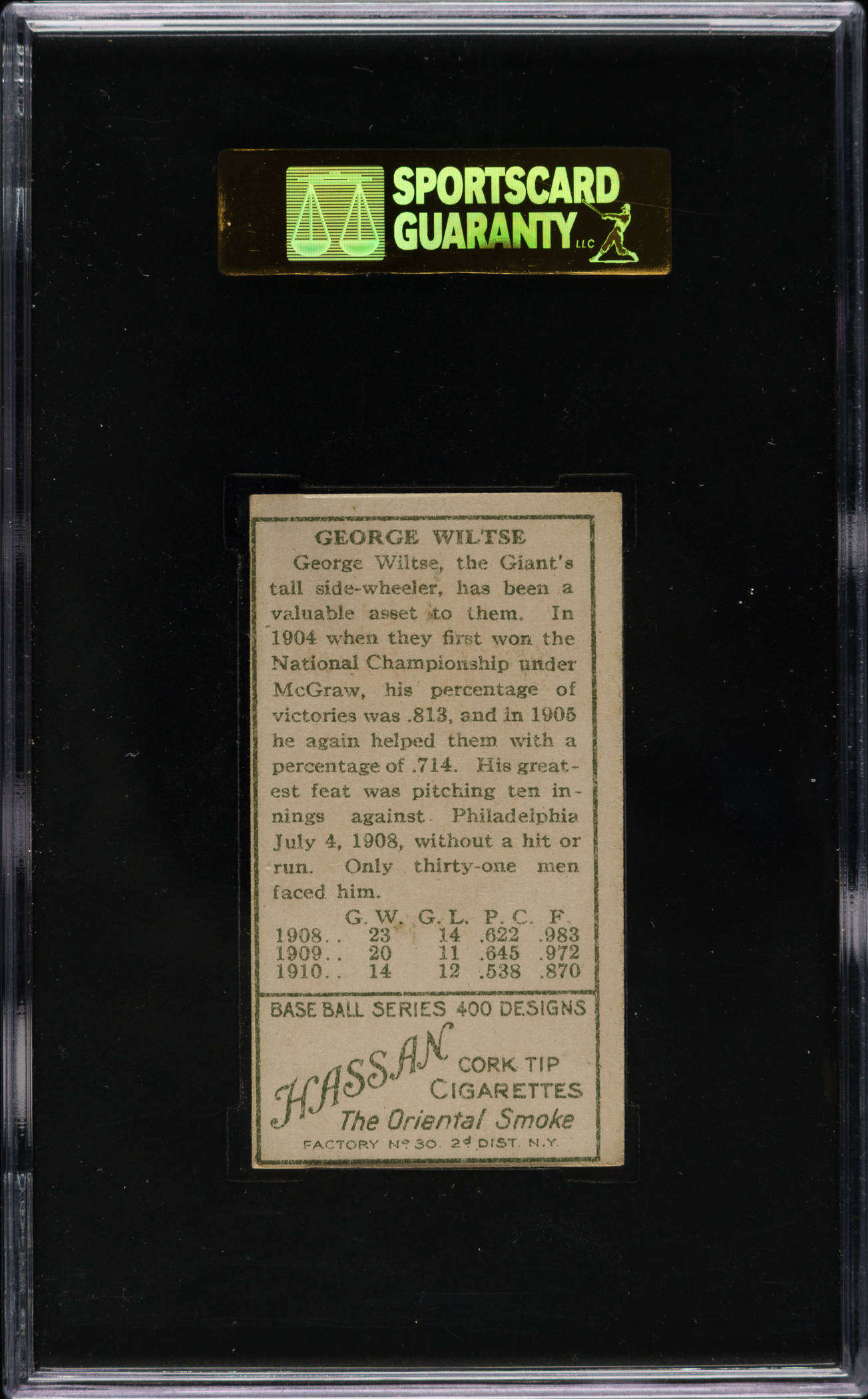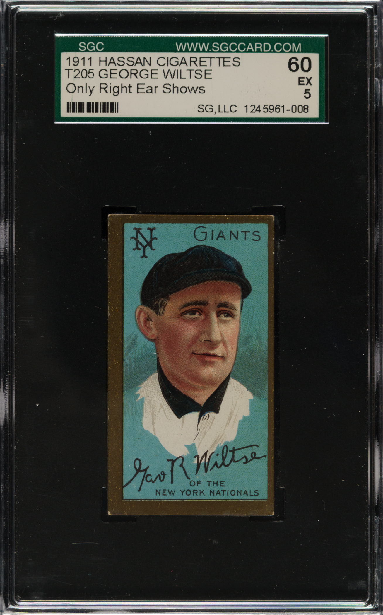 Lot # 1621: 1911 T205 Gold Border George Wiltse Right Ear Only SGC EX 60