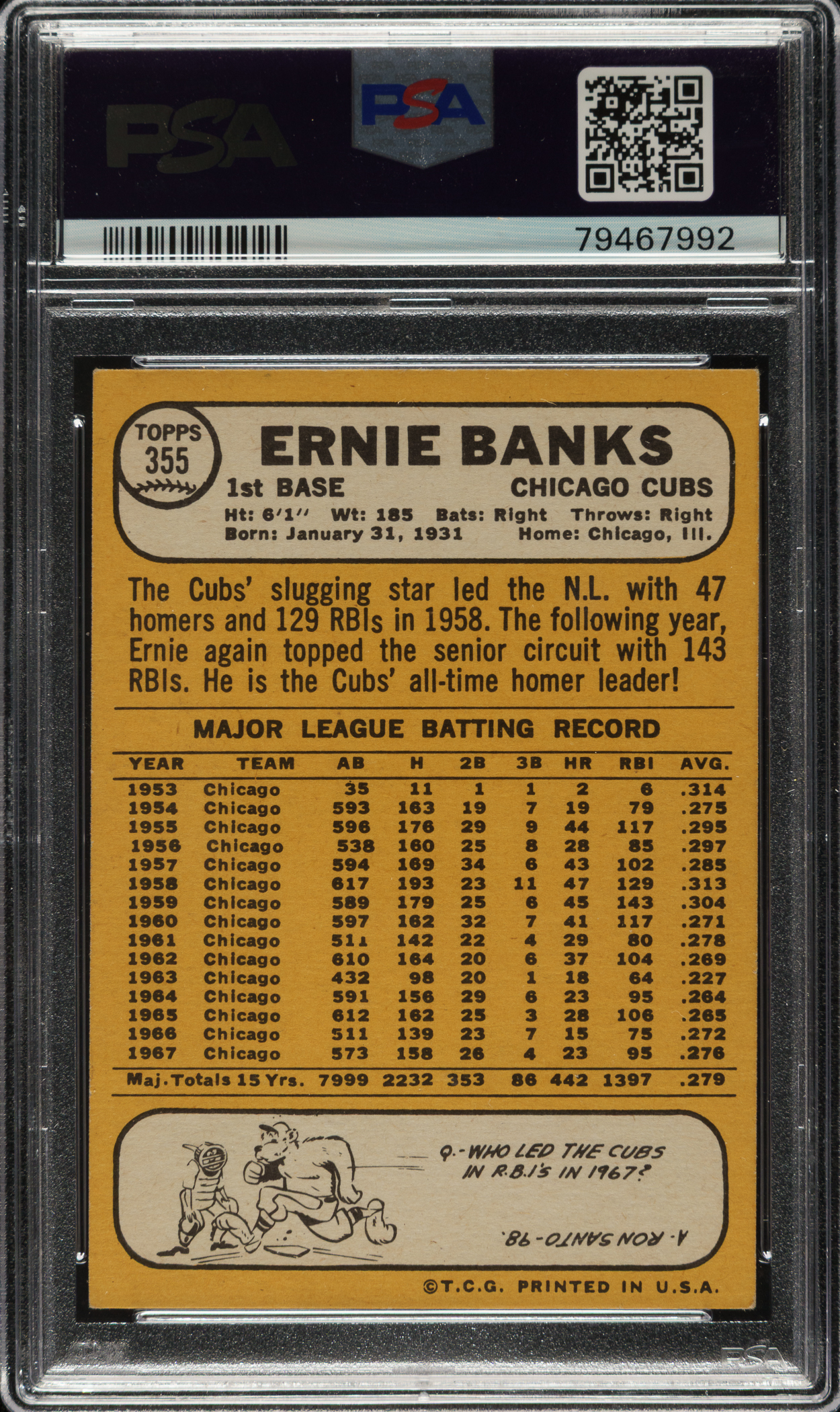 Lot # 3119: 1968 Topps #355 Ernie Banks PSA NM 7