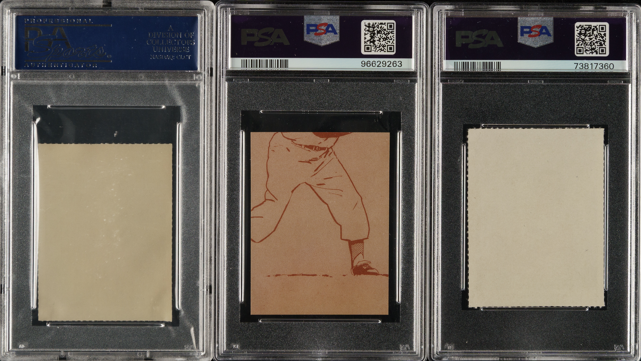 Trio of 1955 Golden Stamps Brooklyn Dodgers and New York Giants cards, each graded and encapsulated by PSA. This trio consists of the following: 1) 1955 Golden Stamps New York Giants Sal Maglie (GEM MINT 10). 2) 1955 Golden Stamps Brooklyn Dodgers Cover Duke Snider (EX 5). 3) 1955 Golden Stamps Brooklyn Dodgers Pee Wee Reese (NM 7). Total: 3 cards.