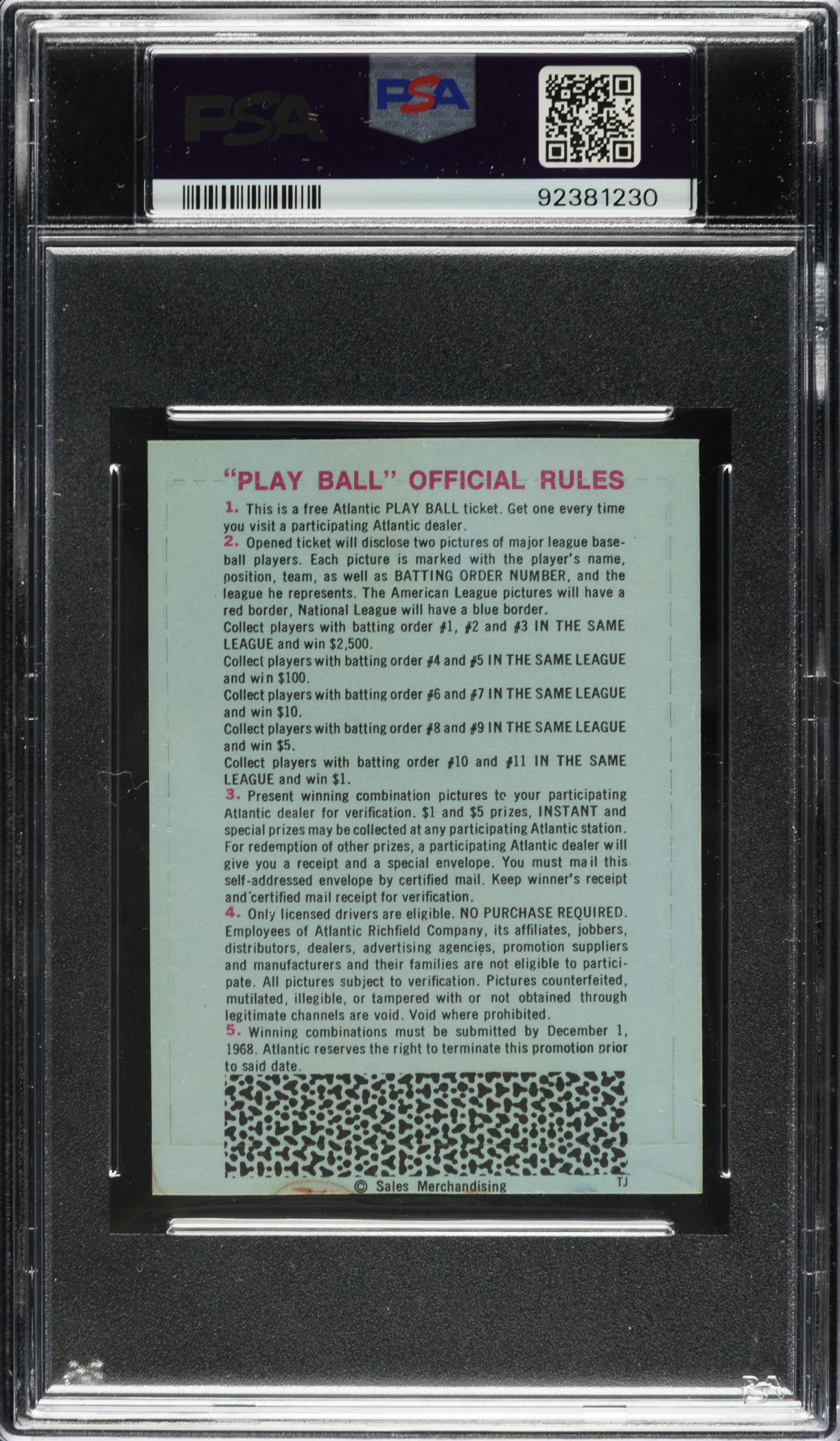Lot # 1857: 1968 Atlantic Oil Unopened Play Ball Pack PSA NM-MT 8