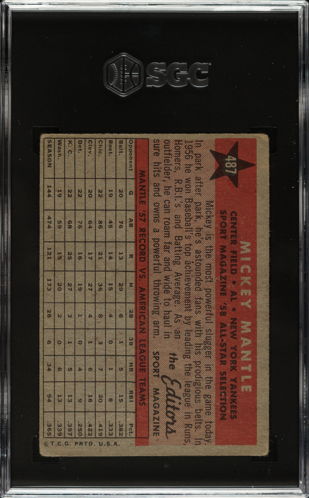 Graded VG 3 by SGC. New York Yankees Hall of Famer Mickey Mantle.
