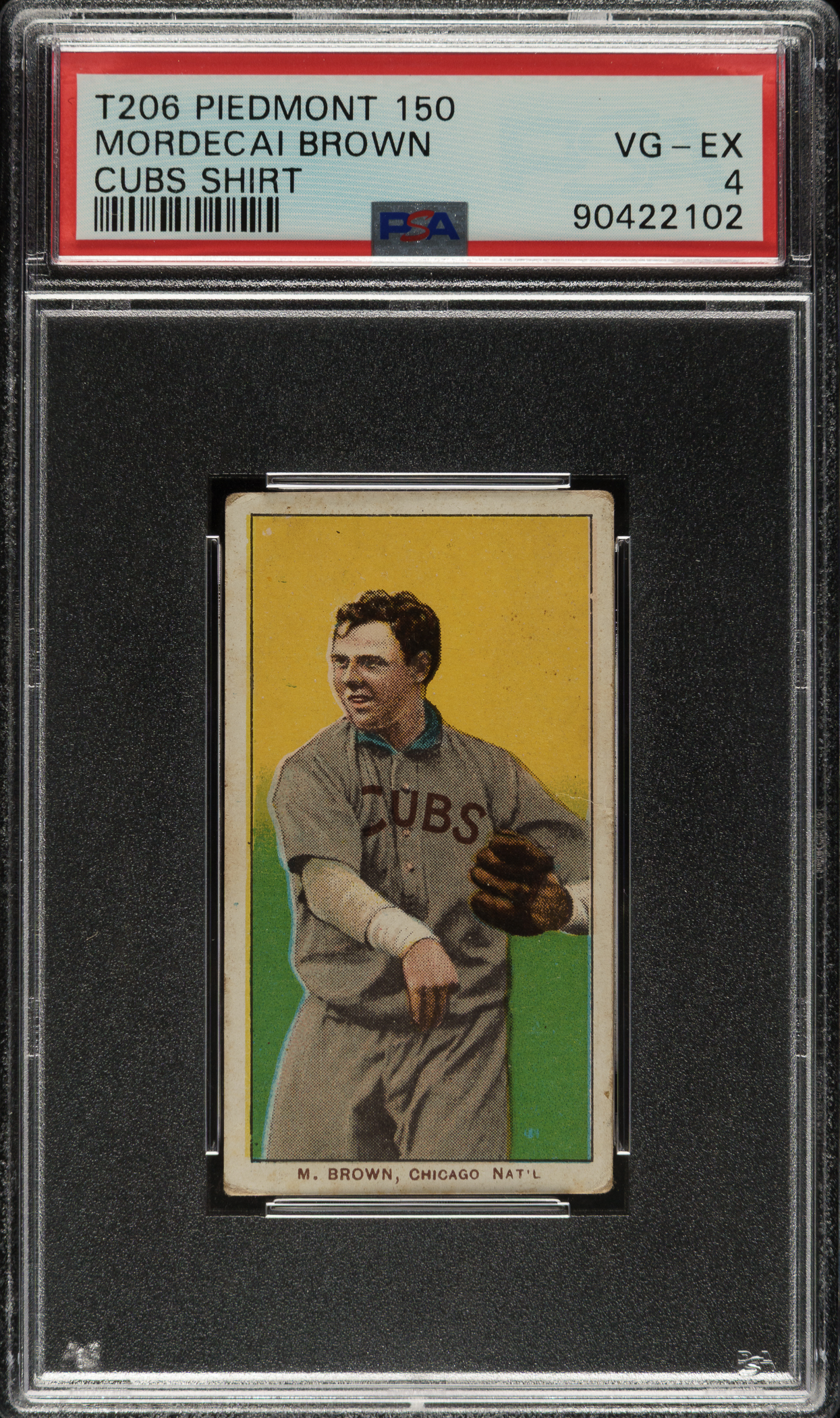 Graded VG-EX 4 by PSA. Chicago Cubs Hall of Famer Mordecai Brown.