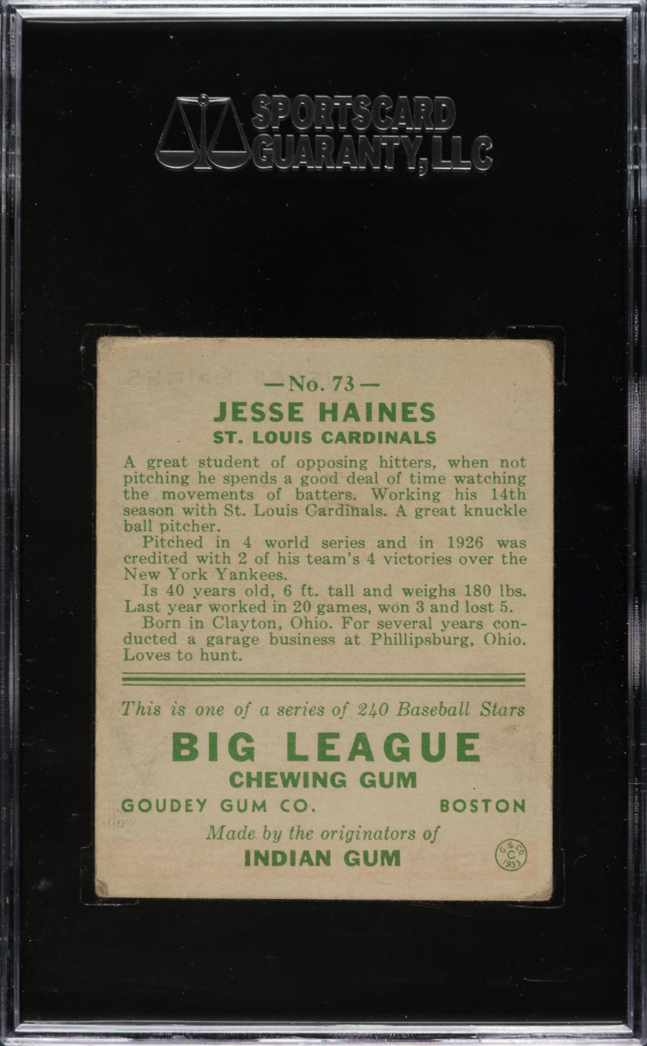 Graded VG/EX+ 55 by SGC. St. Louis Cardinals Hall of Famer Jesse Haines.