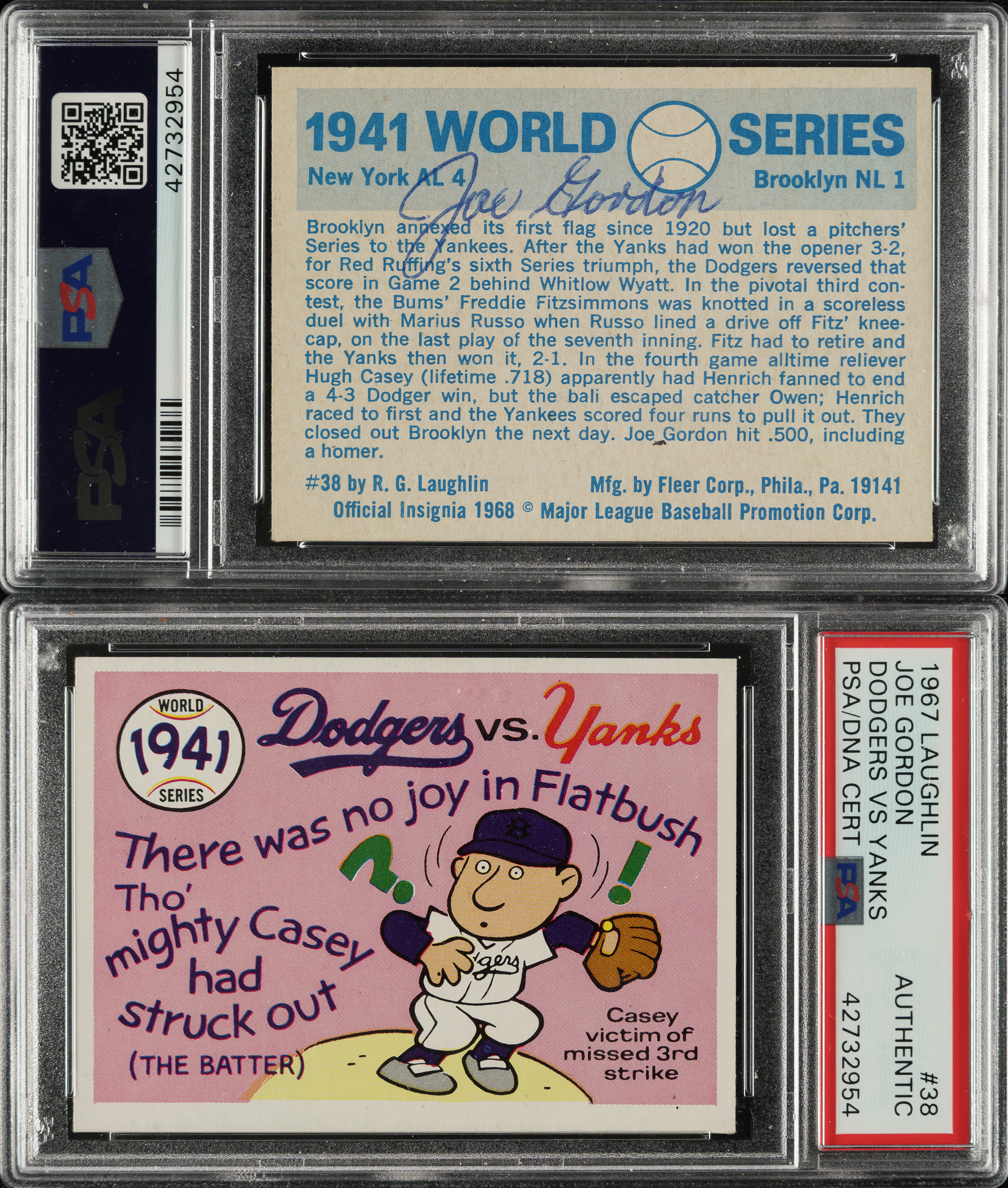 PSA/DNA has encapsulated the card, grading the signature Authentic. New York Yankees Hall of Famer Joe Gordon. Please note that PSA has mislabeled the card and will be sold as-is.