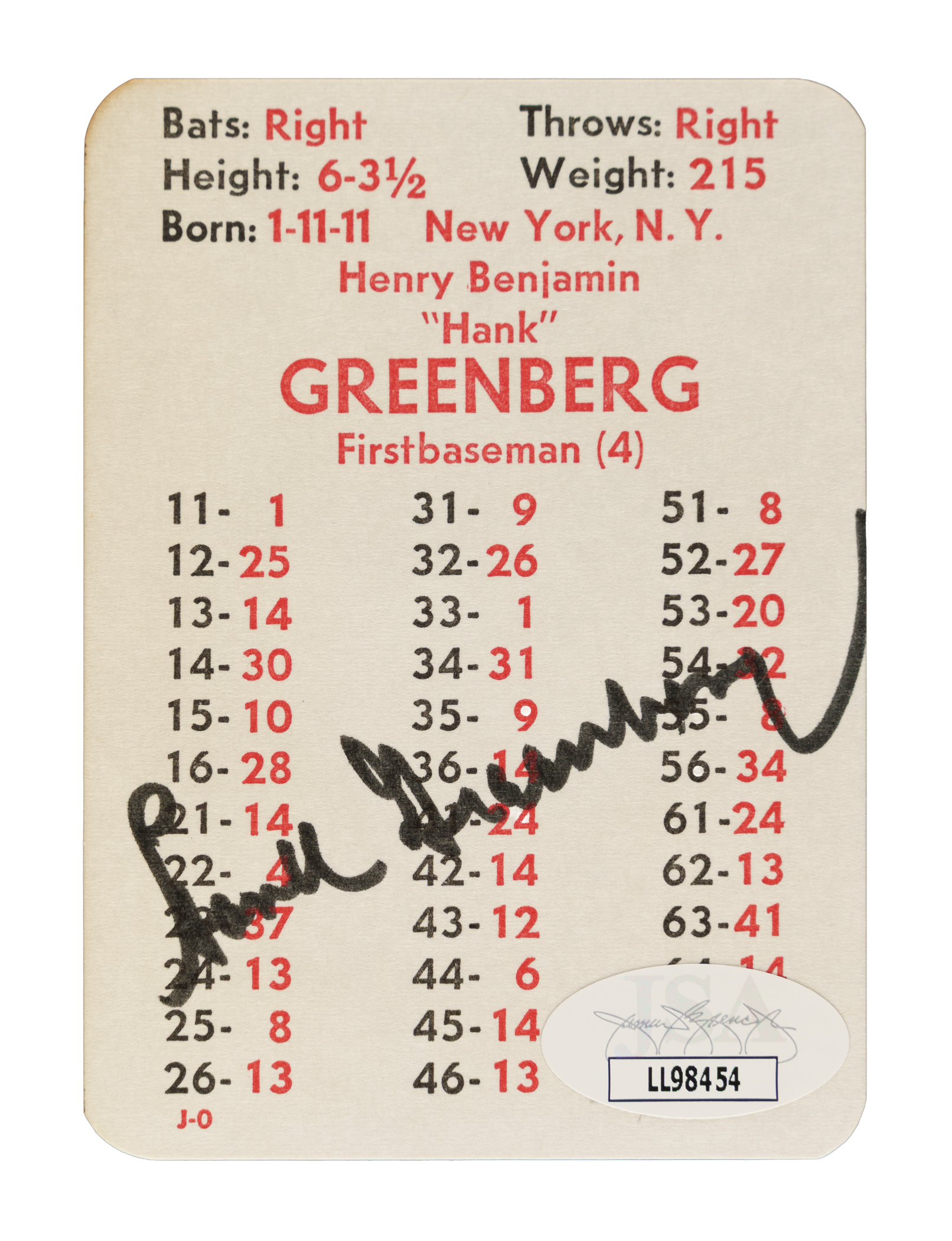 Detroit Tigers Hall of Famer Hank Greenberg. Condition is Nr/Mt. Basic certification from James Spence/JSA.