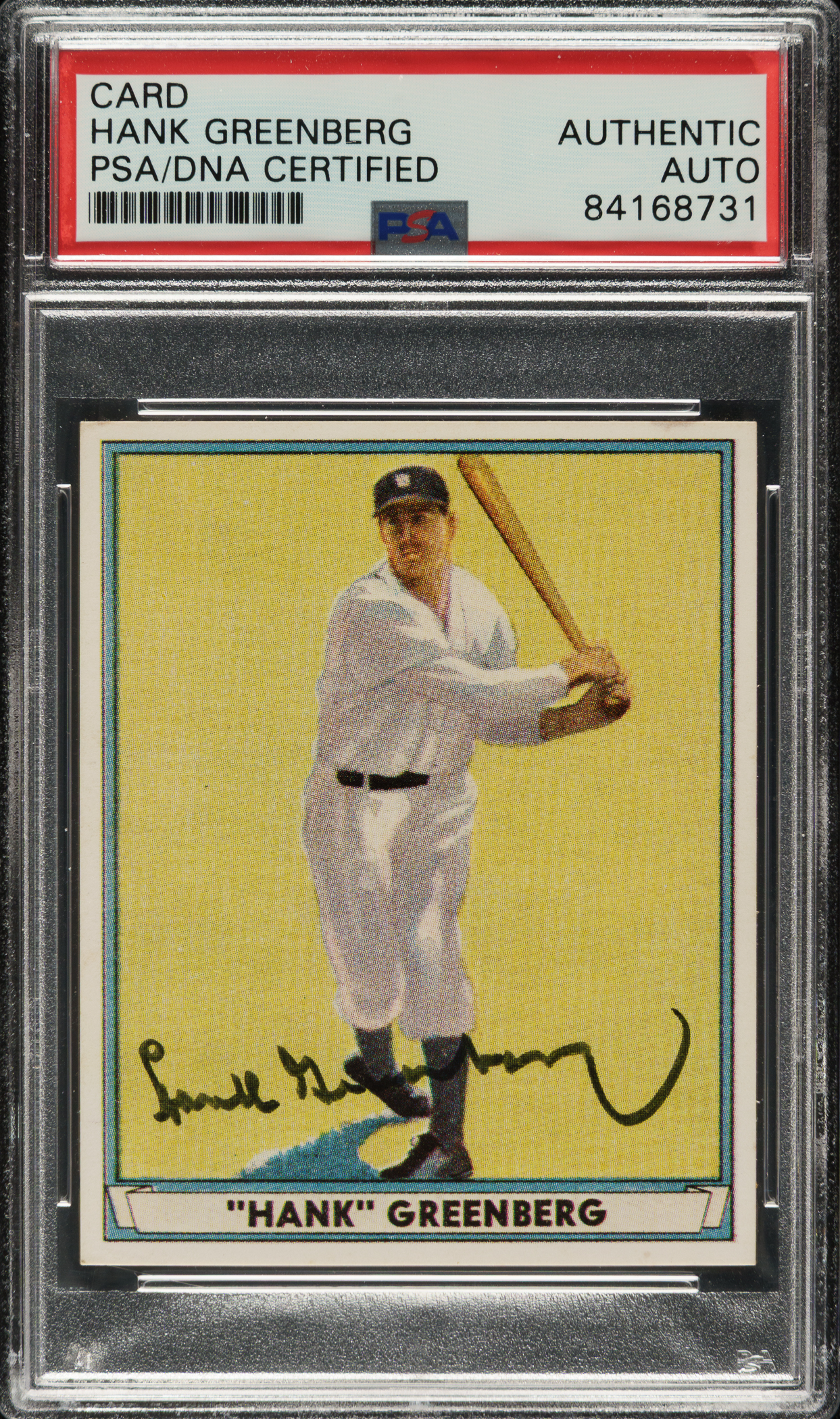 PSA/DNA has encapsulated the card, grading the signature Authentic. Detroit Tigers Hall of Famer Hank Greenberg.