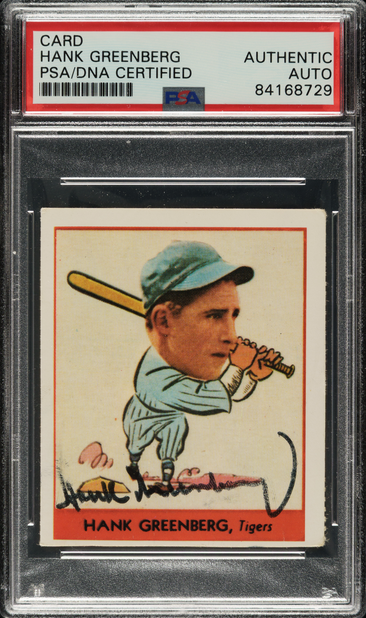 PSA/DNA has encapsulated the card, grading the signature Authentic. Detroit Tigers Hall of Famer Hank Greenberg.