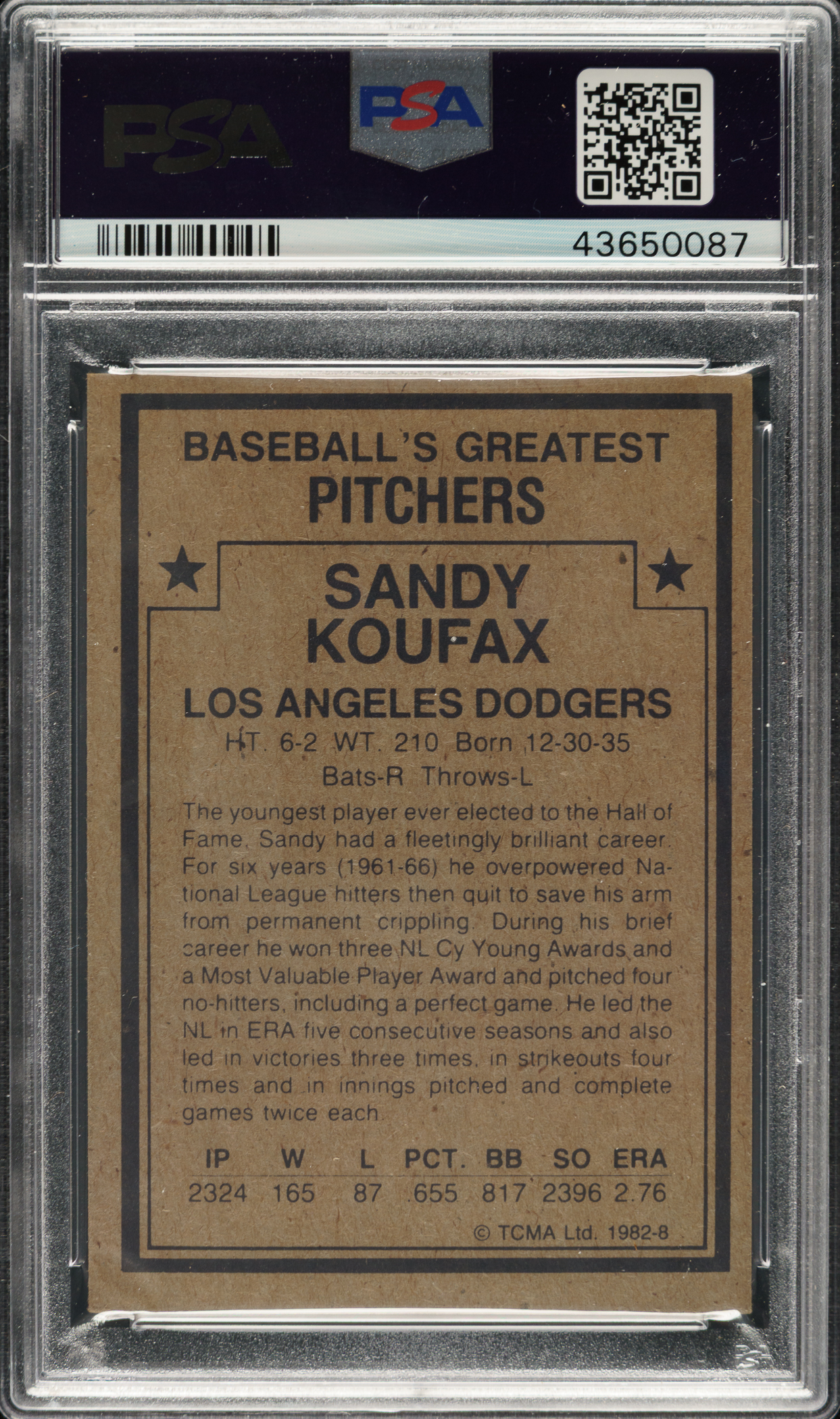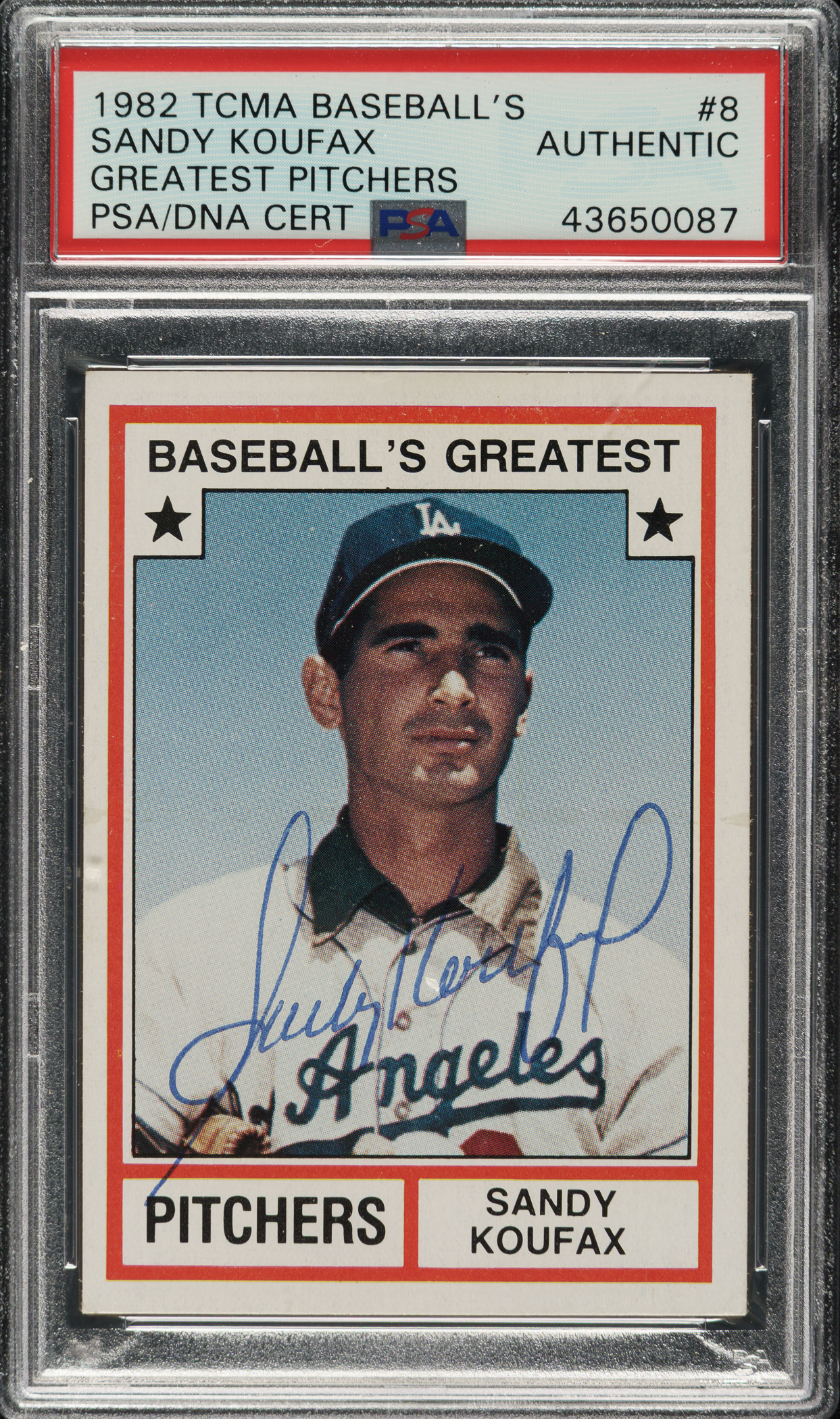 Lot # 2437: Signed 1982 TCMA Baseball's Greatest Pitchers #8 Sandy Koufax - PSA/DNA