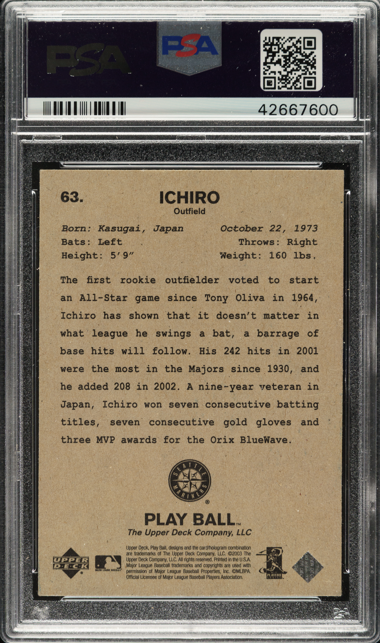 PSA/DNA has encapsulated the card, grading the signature Authentic. Seattle Mariners Hall of Famer Ichiro Suzuki.