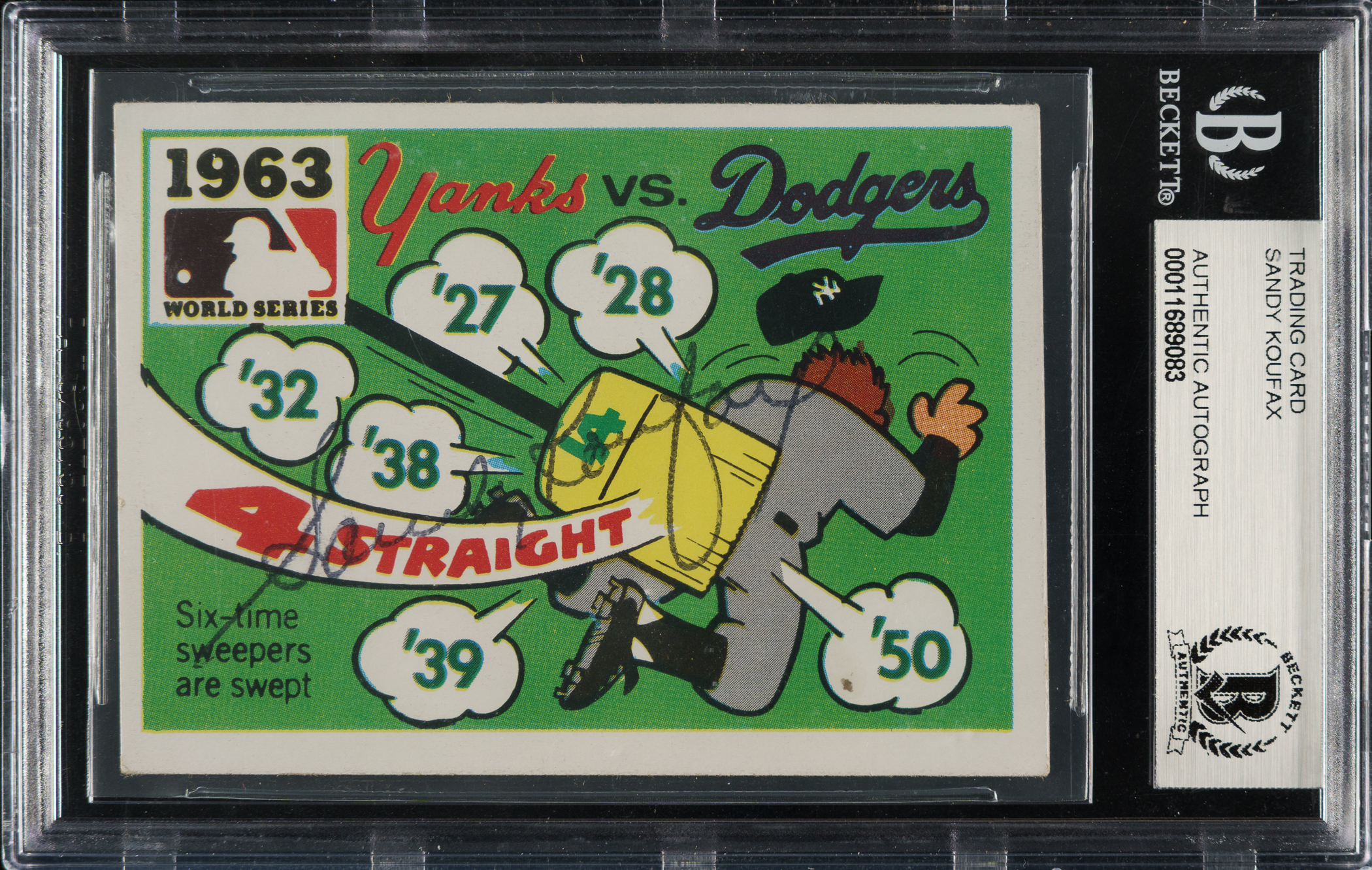Beckett has encapsulated the card, grading the signature Authentic. Los Angeles Dodgers Hall of Famer Sandy Koufax.