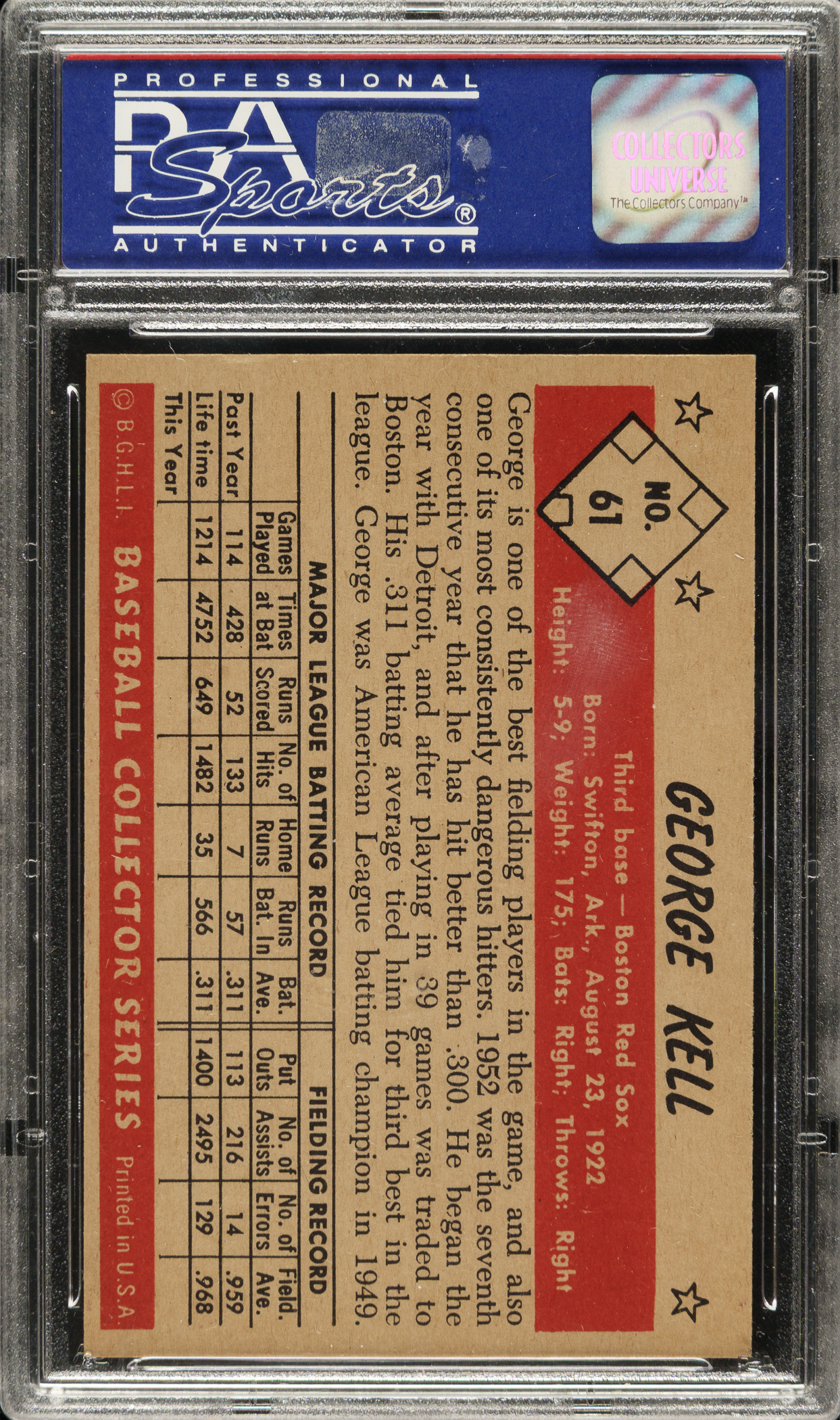Graded NM-MT 8 by PSA. Boston Red Sox Hall of Famer George Kell.