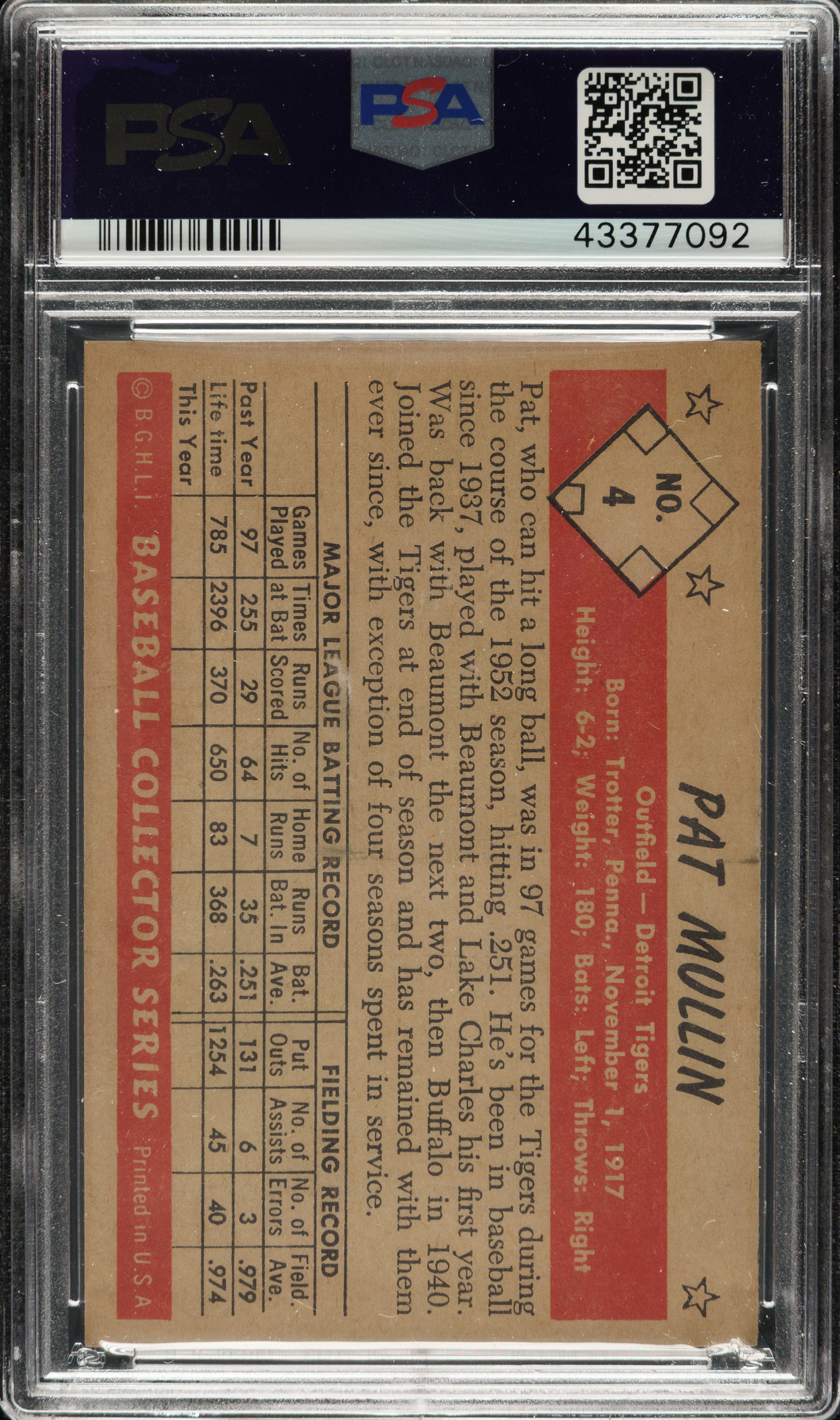 Lot # 1516: 1953 Bowman Black & White #4 Pat Mullin PSA NM 7