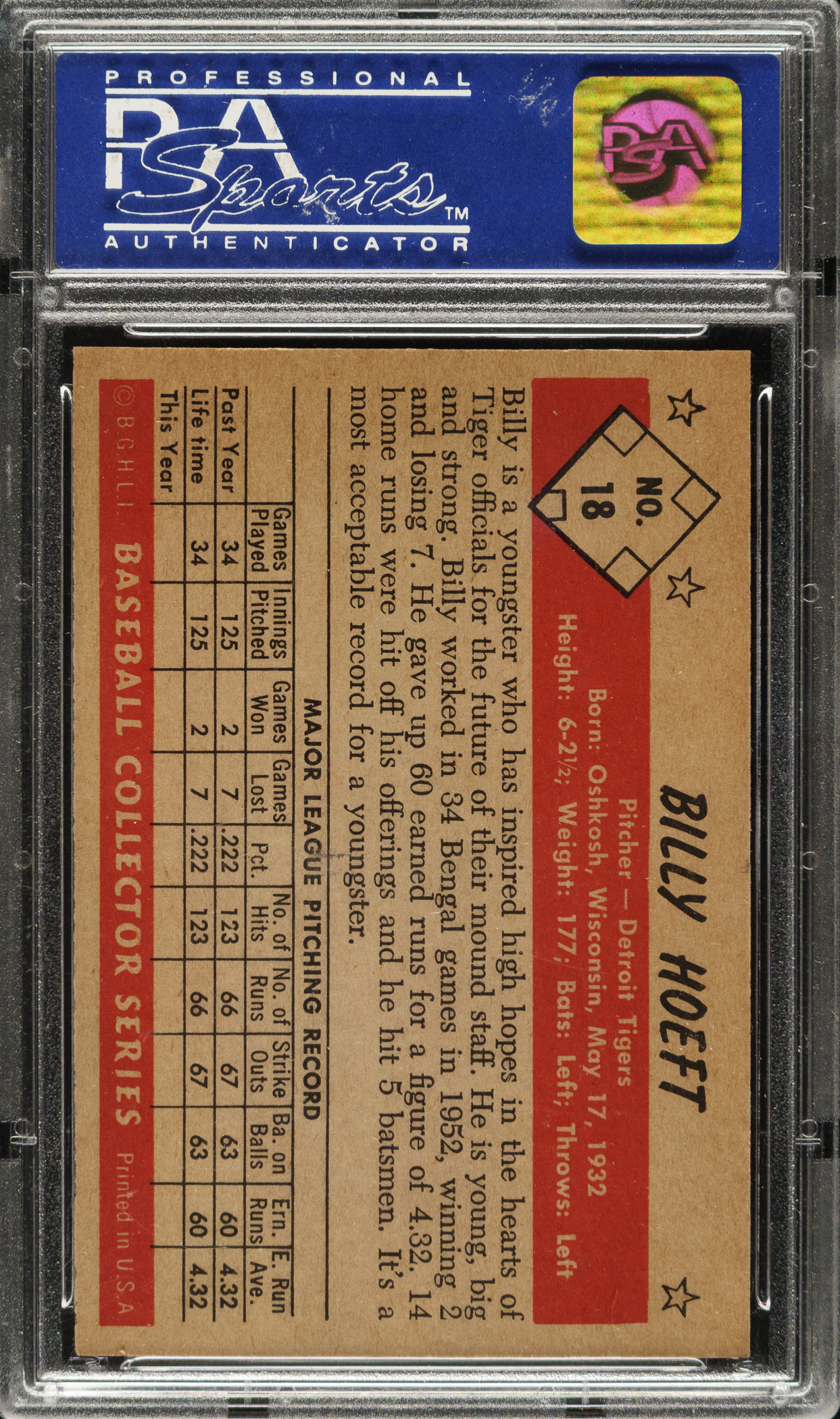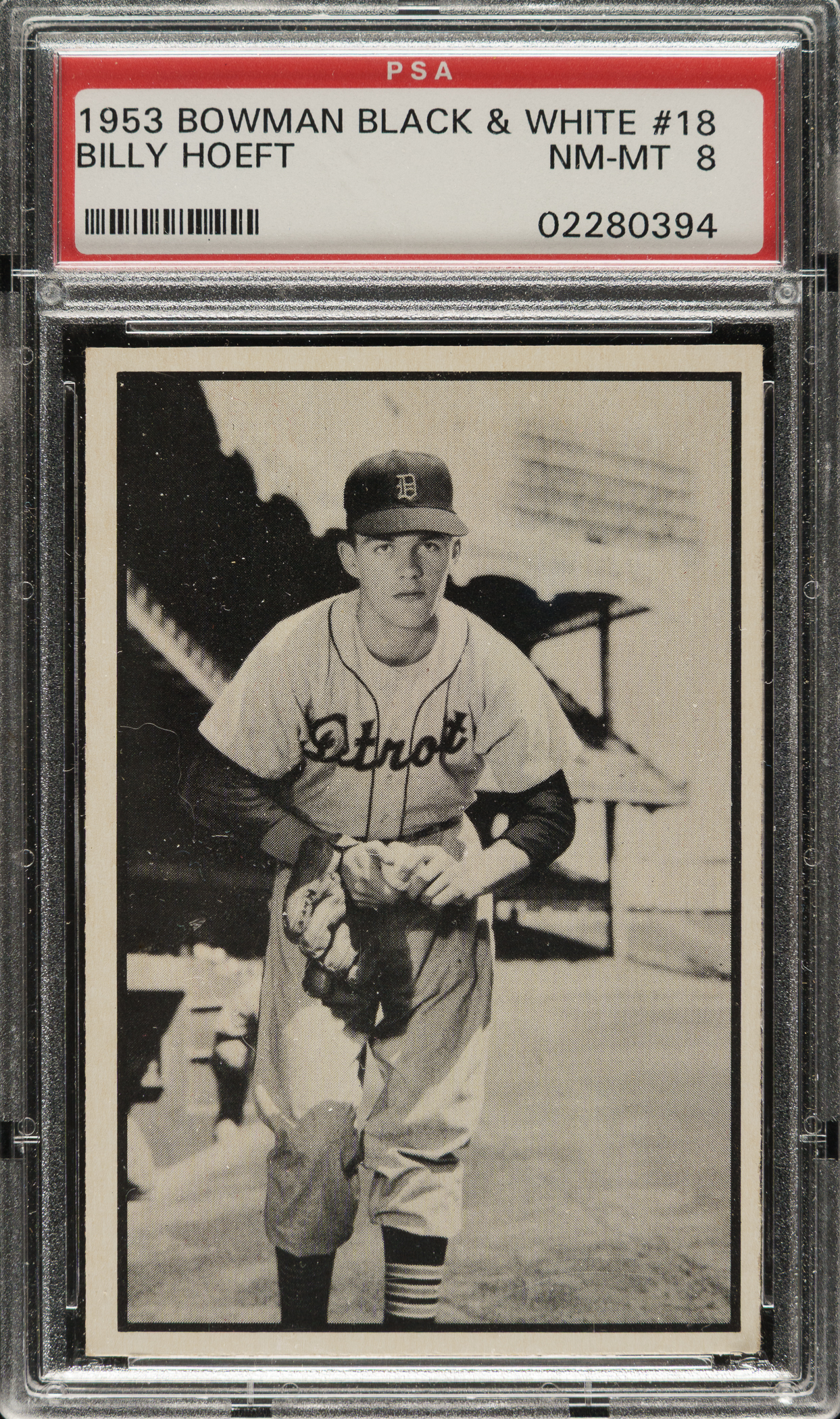 Lot # 1513: 1953 Bowman Black & White #18 Billy Hoeft PSA NM-MT 8