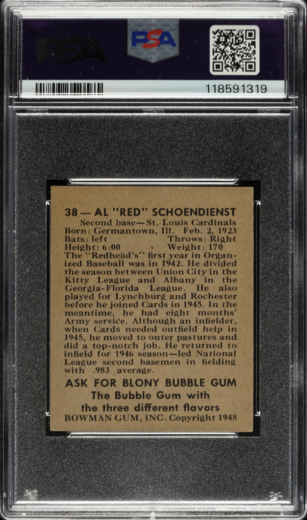 Graded EX+ 5.5 by PSA (submitted by REA). St. Louis Cardinals Hall of Famer Red Schoendienst.