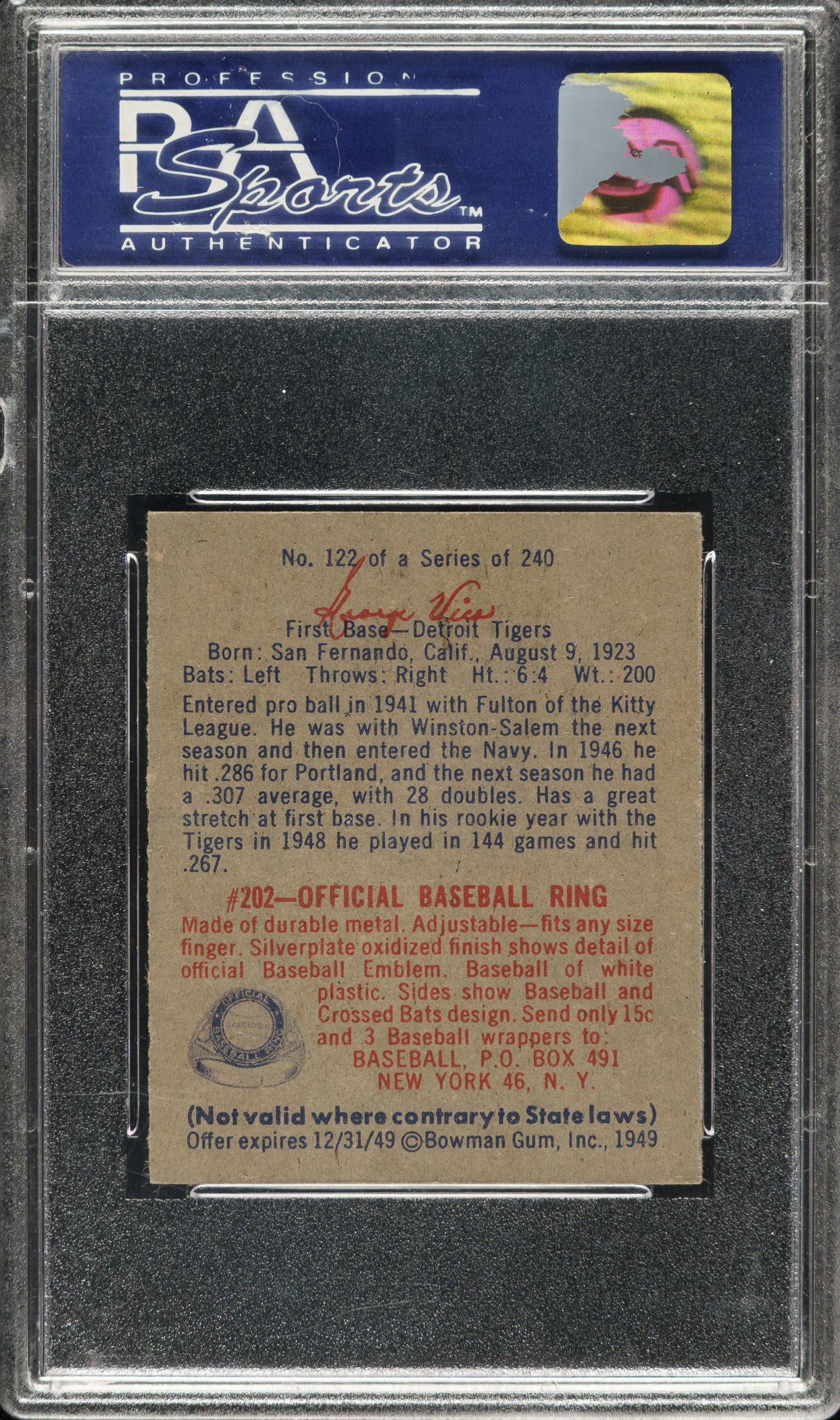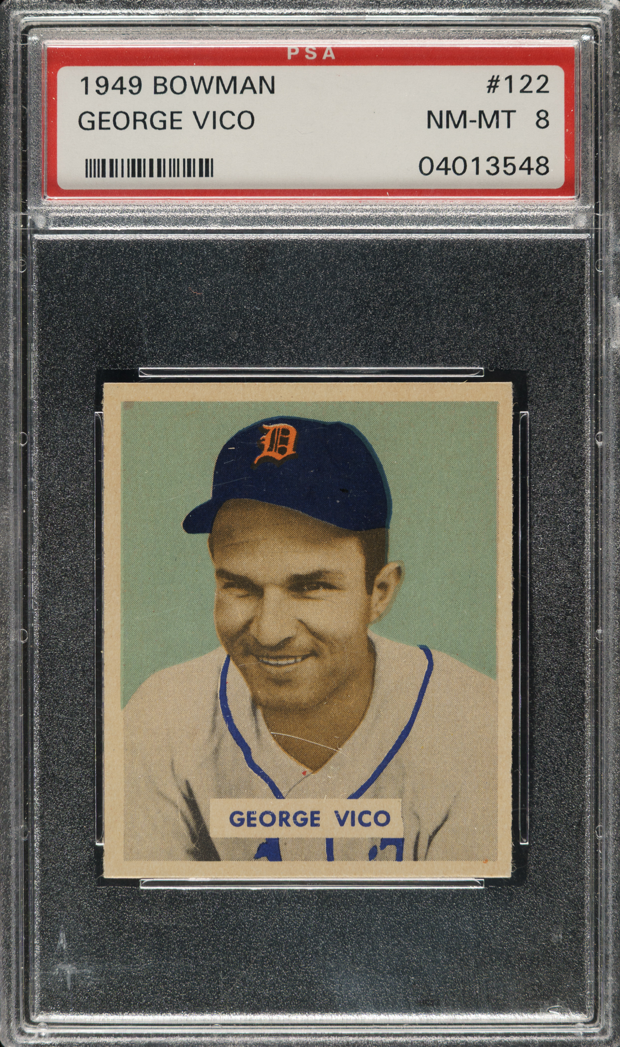 Lot # 1293: 1949 Bowman #122 George Vico PSA NM-MT 8