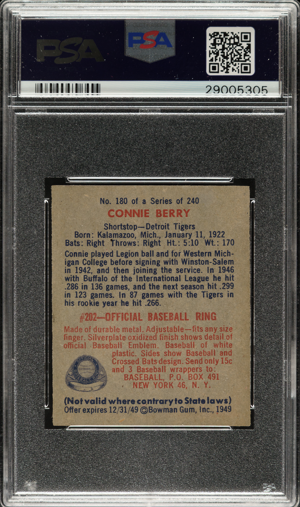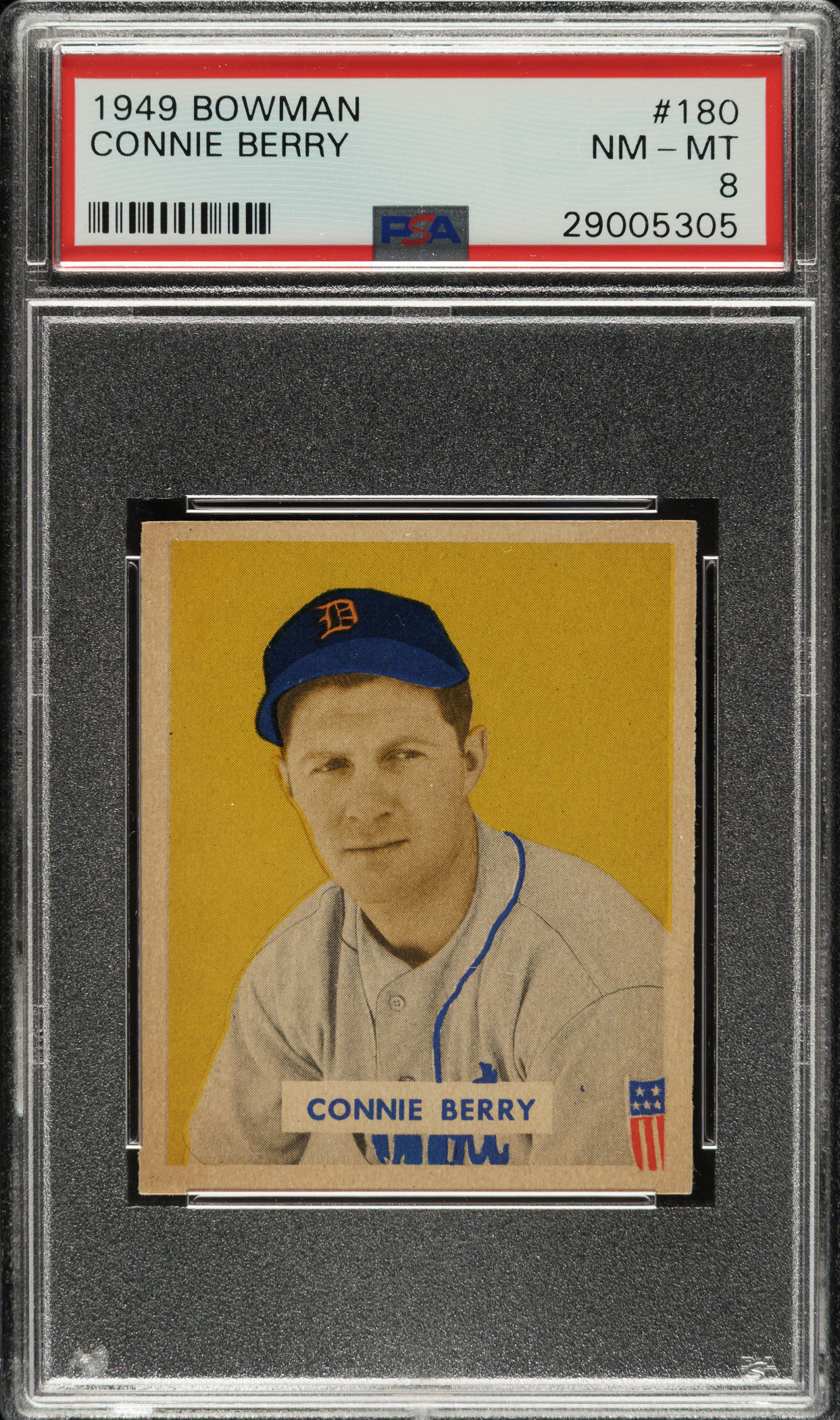 Lot # 1297: 1949 Bowman #180 Connie Berry PSA NM-MT 8