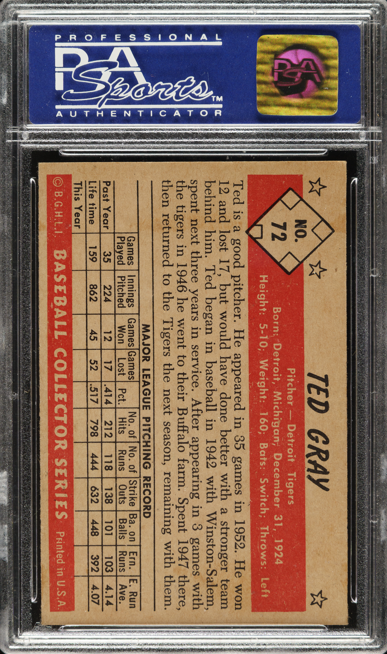 Graded NM-MT 8 by PSA. Detroit Tigers.