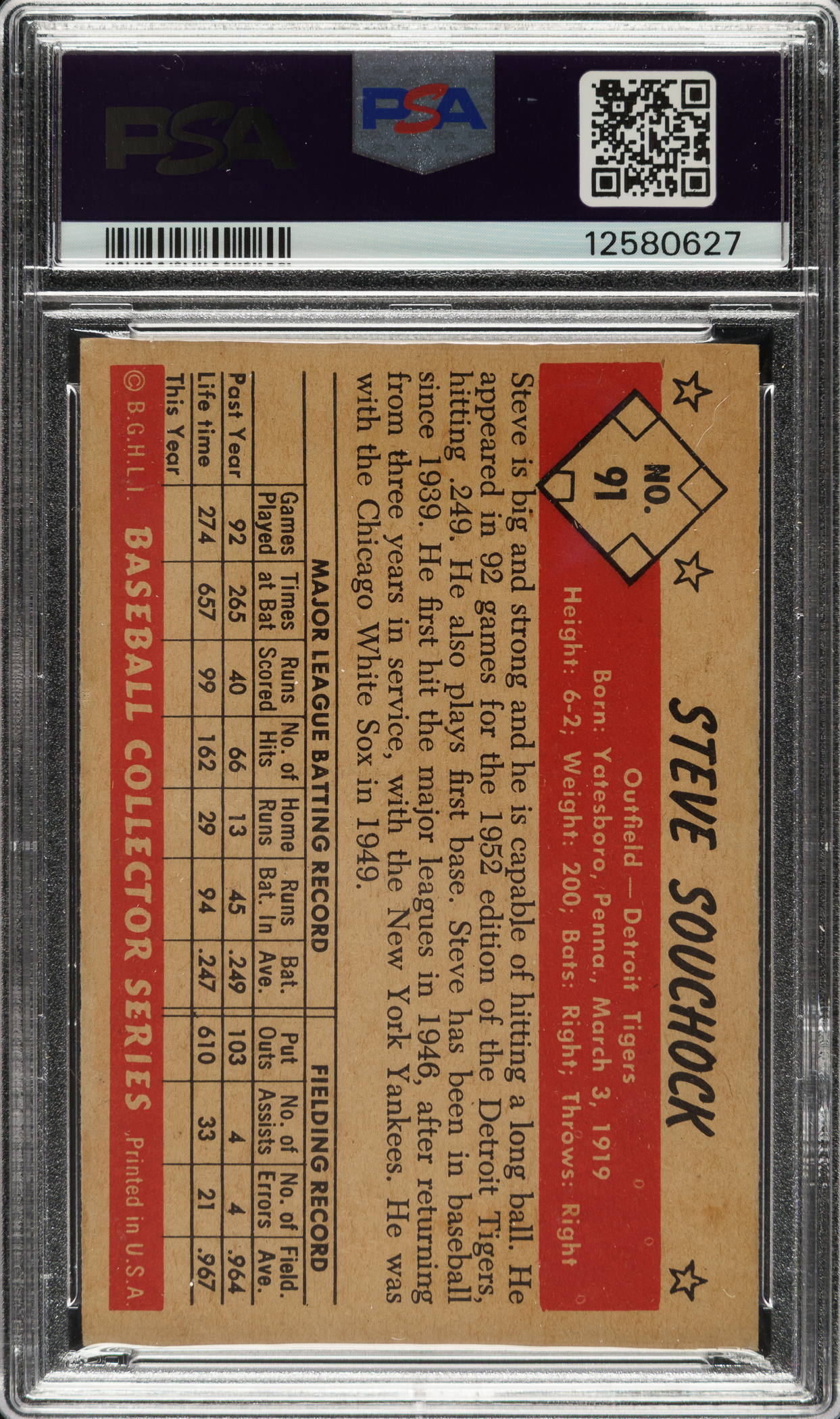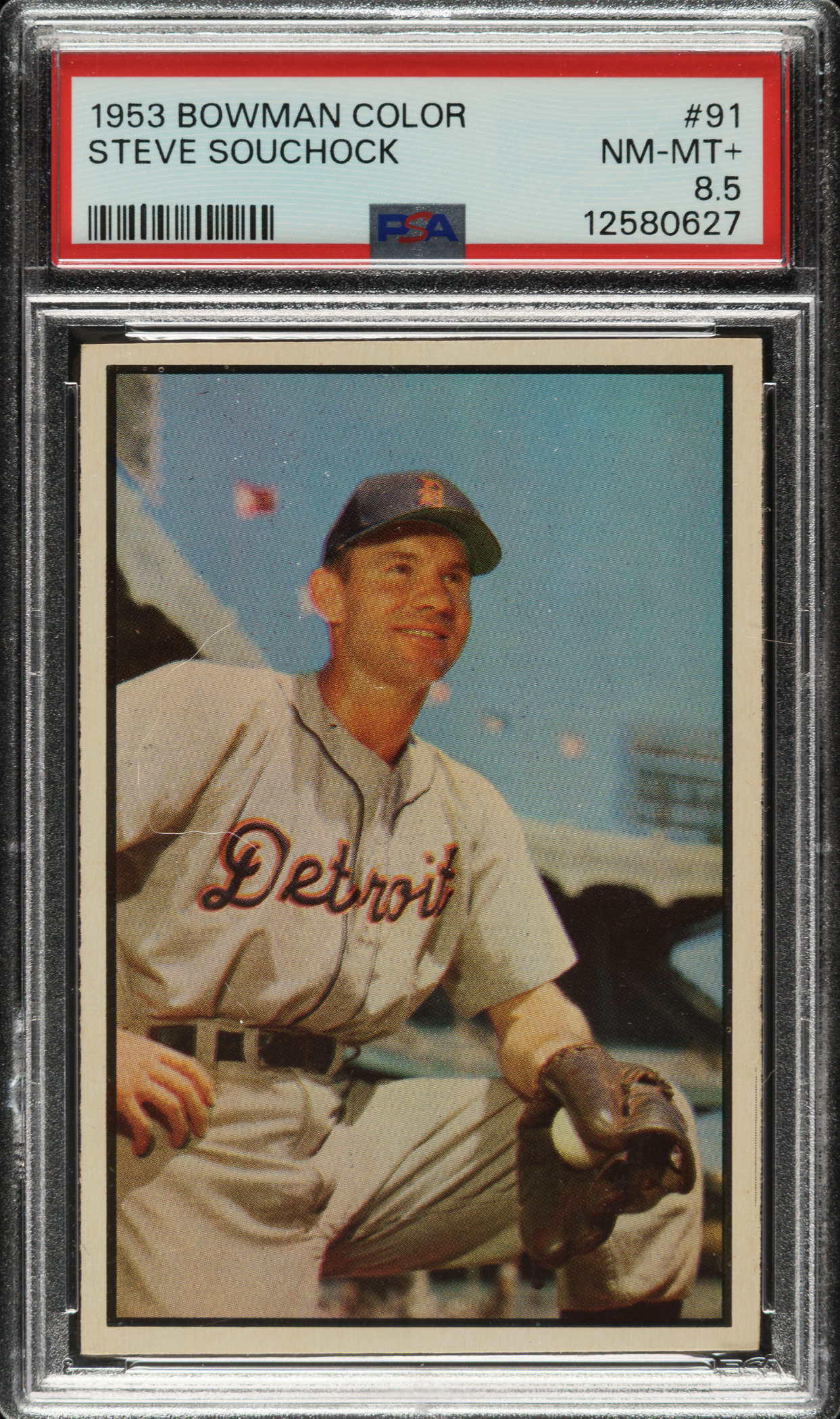 Lot # 1532: 1953 Bowman Color #91 Steve Souchoch PSA NM-MT+ 8.5